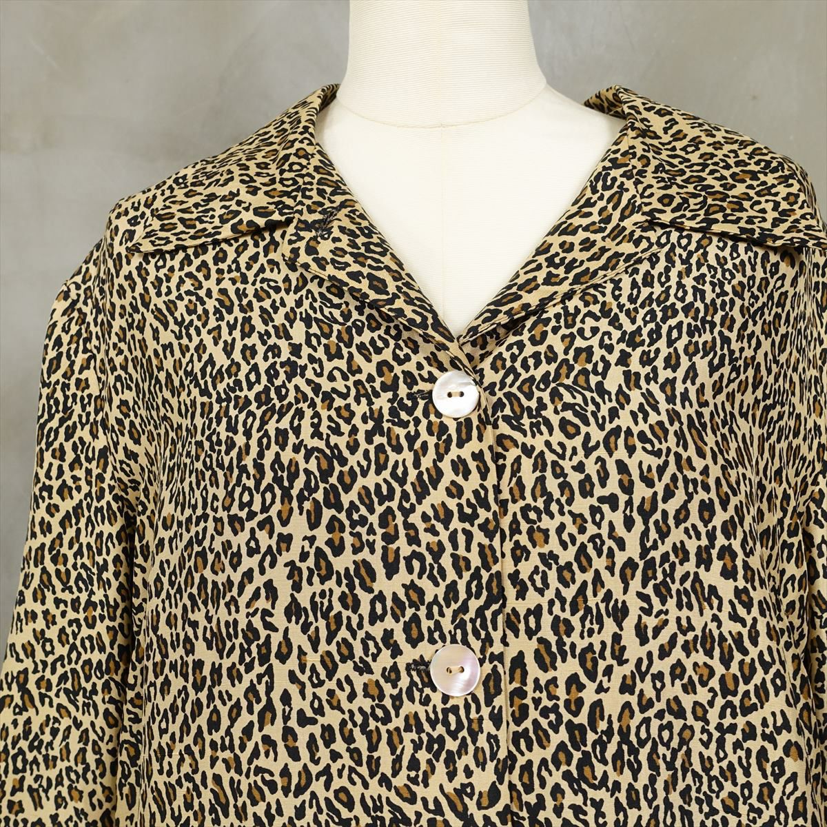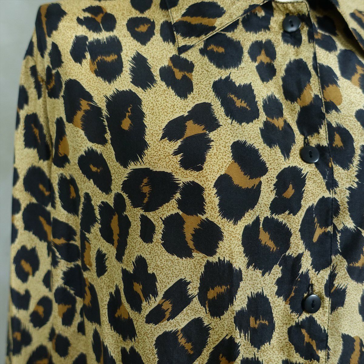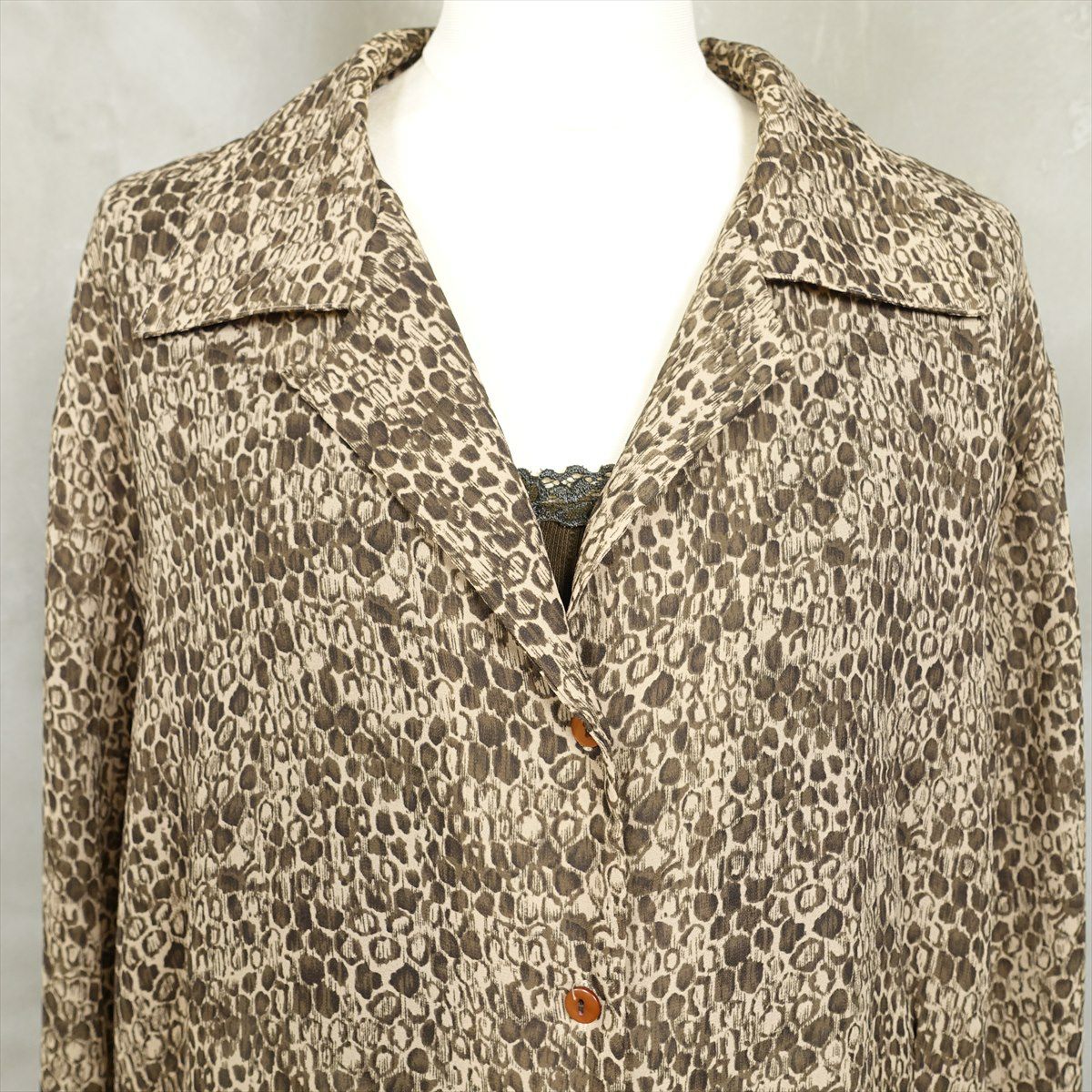 古着 レオパード柄 シェルボタン 長袖シャツ