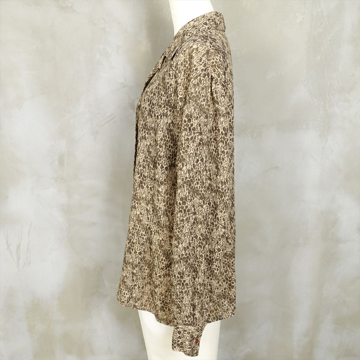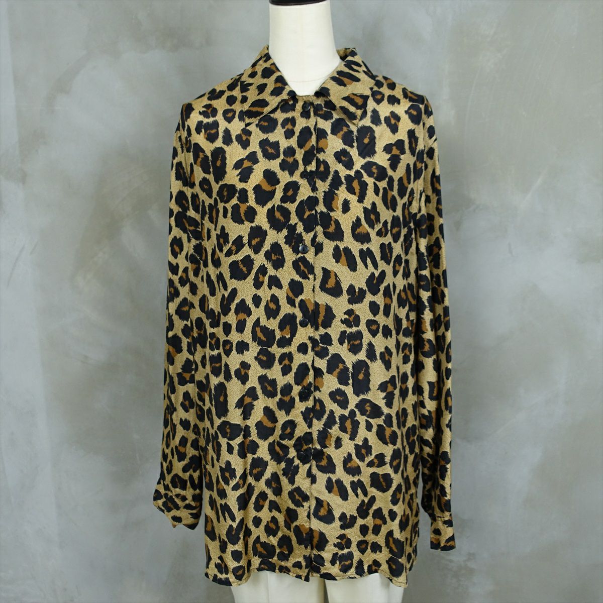 古着 レオパード柄 シルク 長袖シャツ