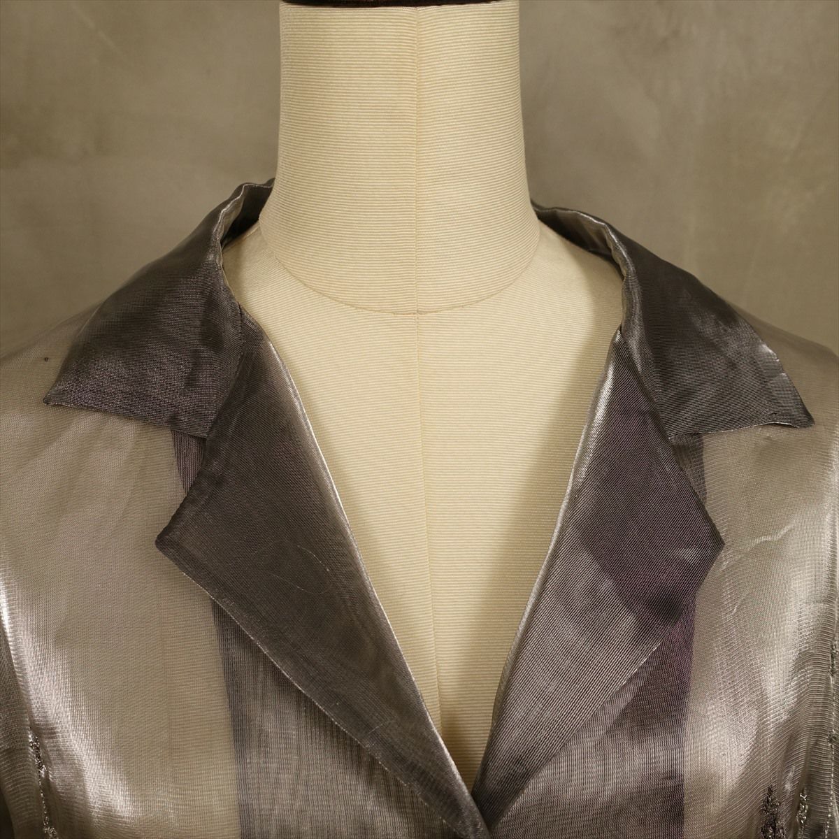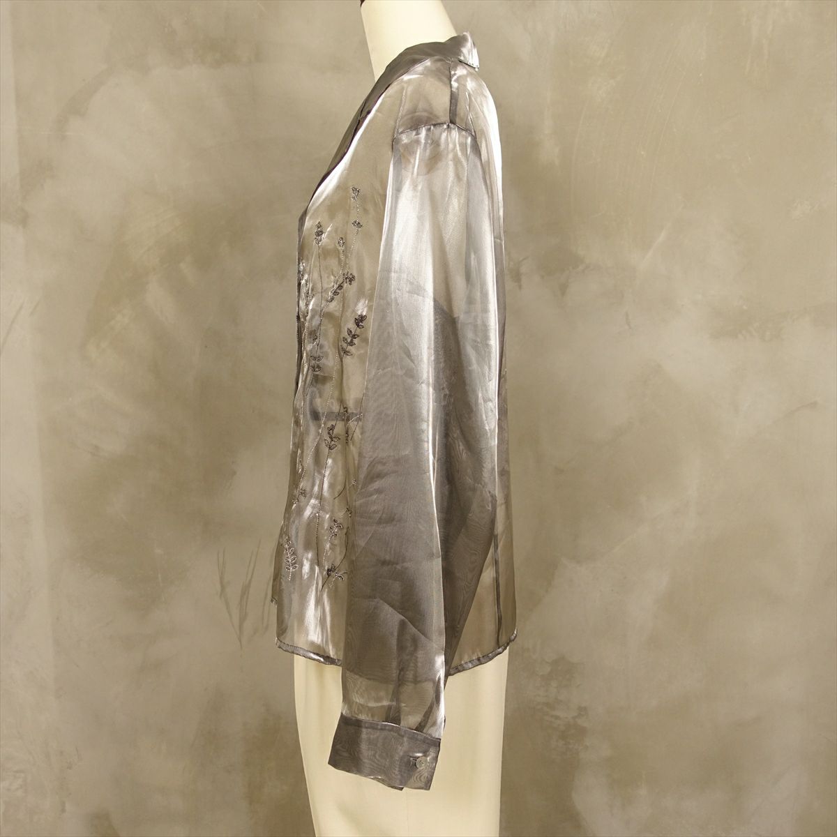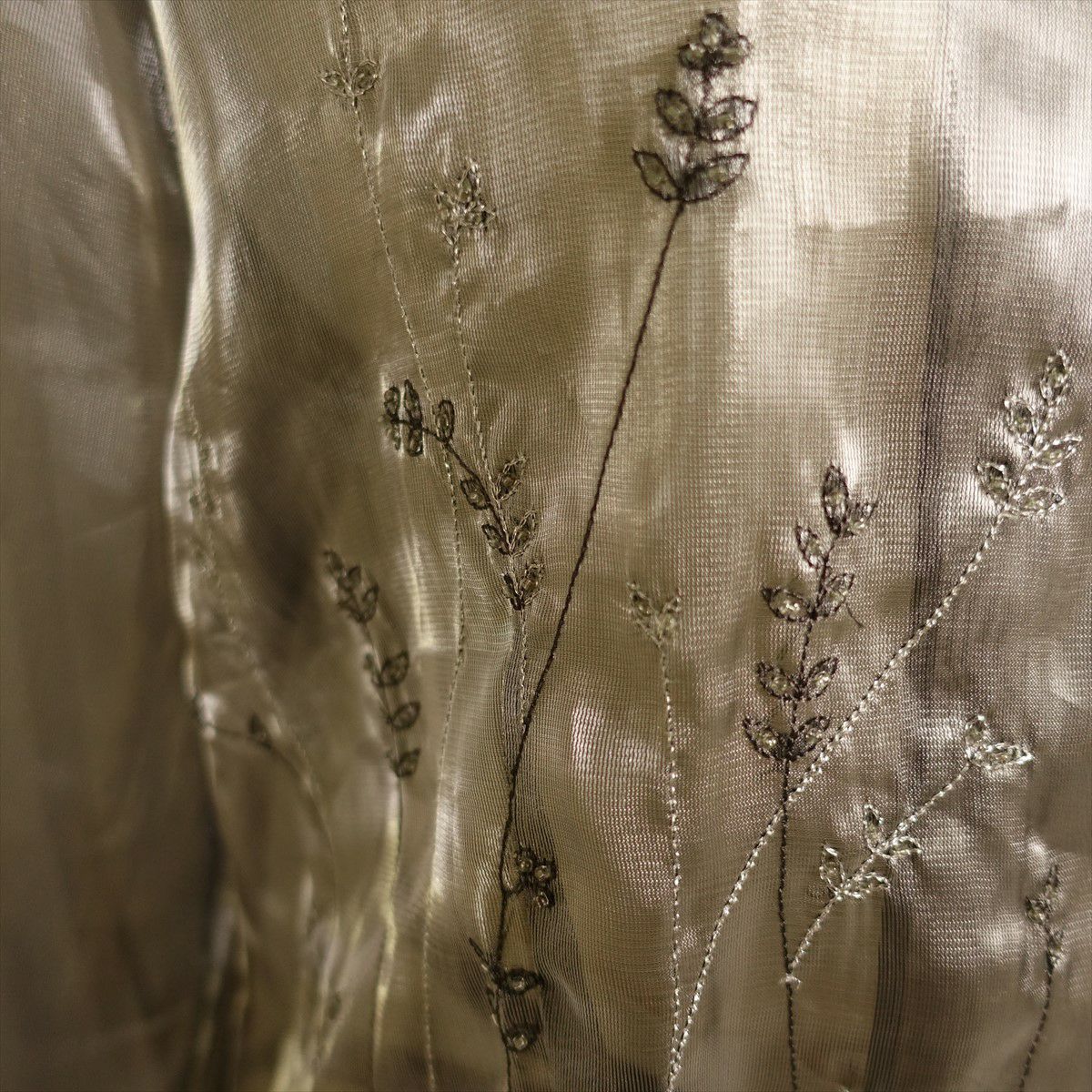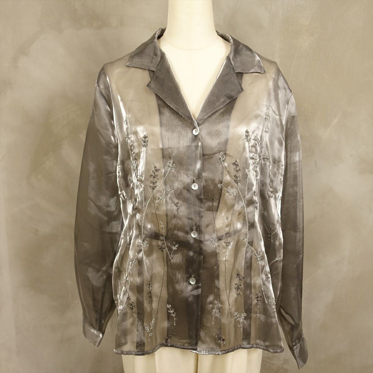 古着 オープンカラー シースルーメタリック 刺繍 長袖シャツ