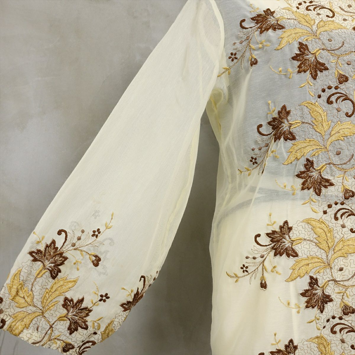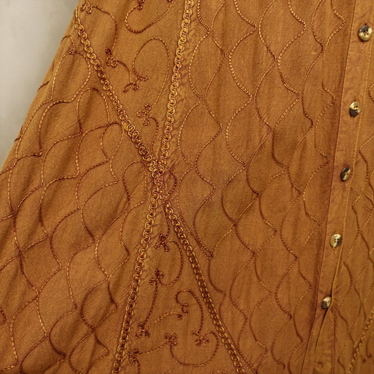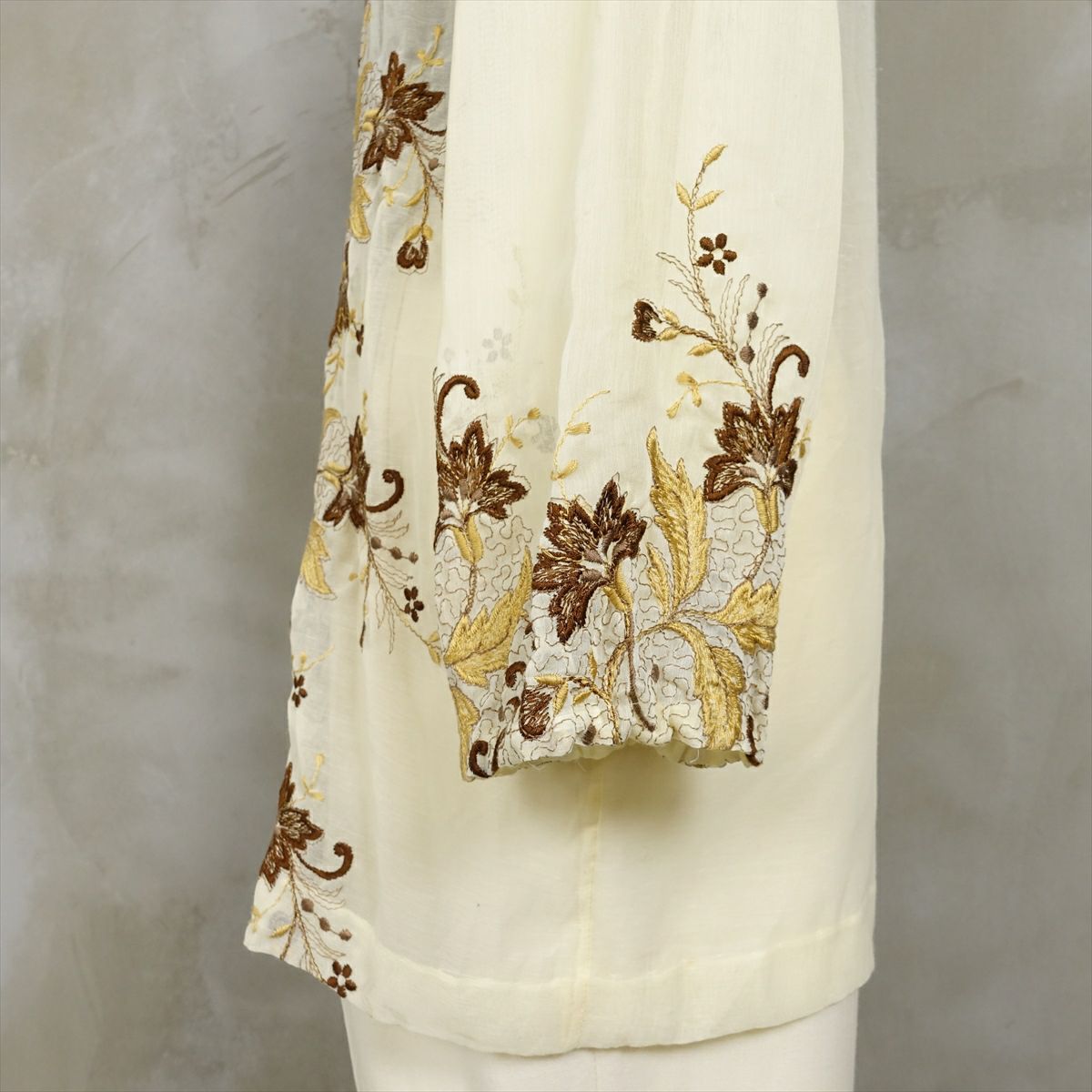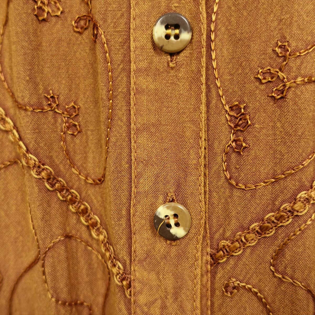 古着 オープンカラー シースルーメタリック 刺繍 長袖シャツ