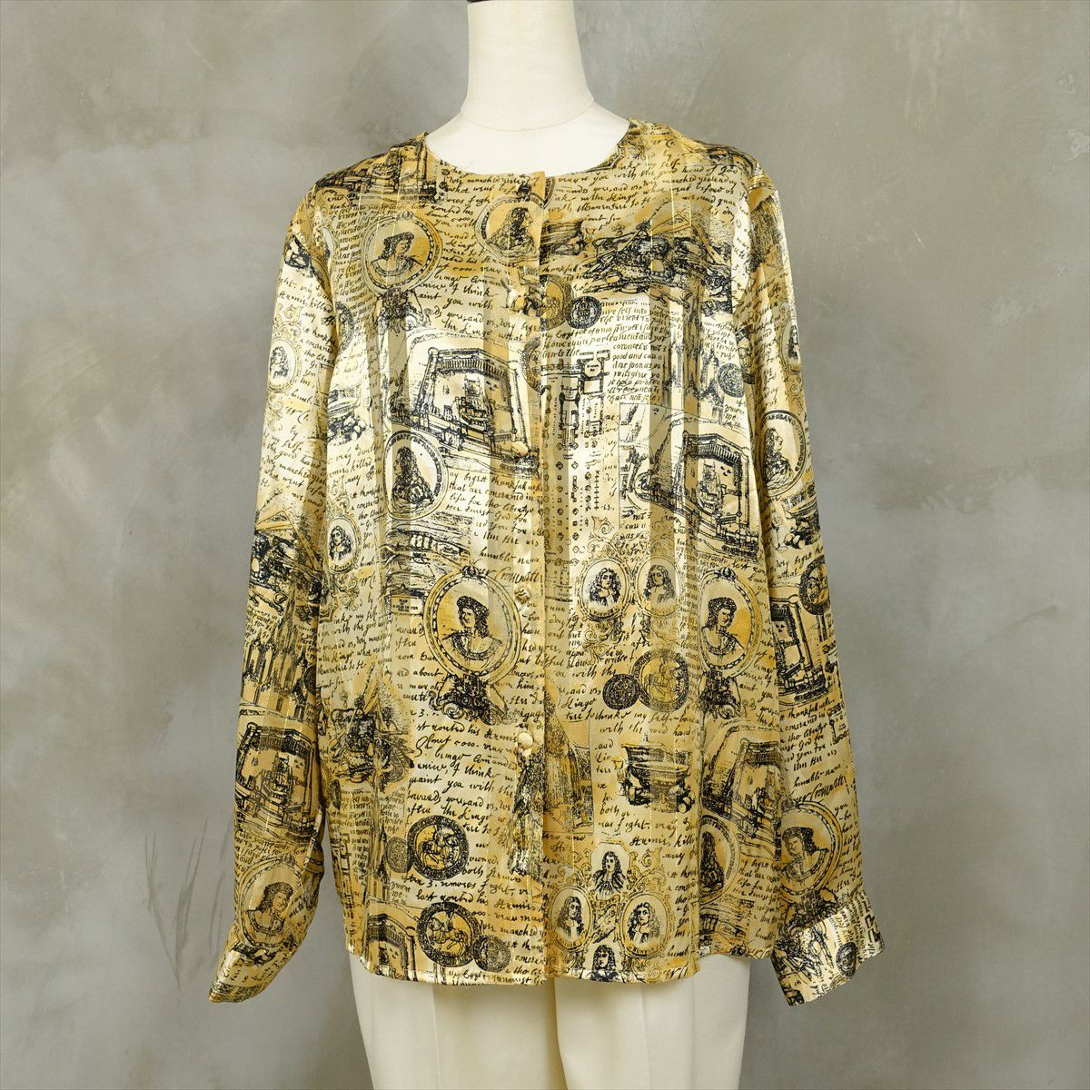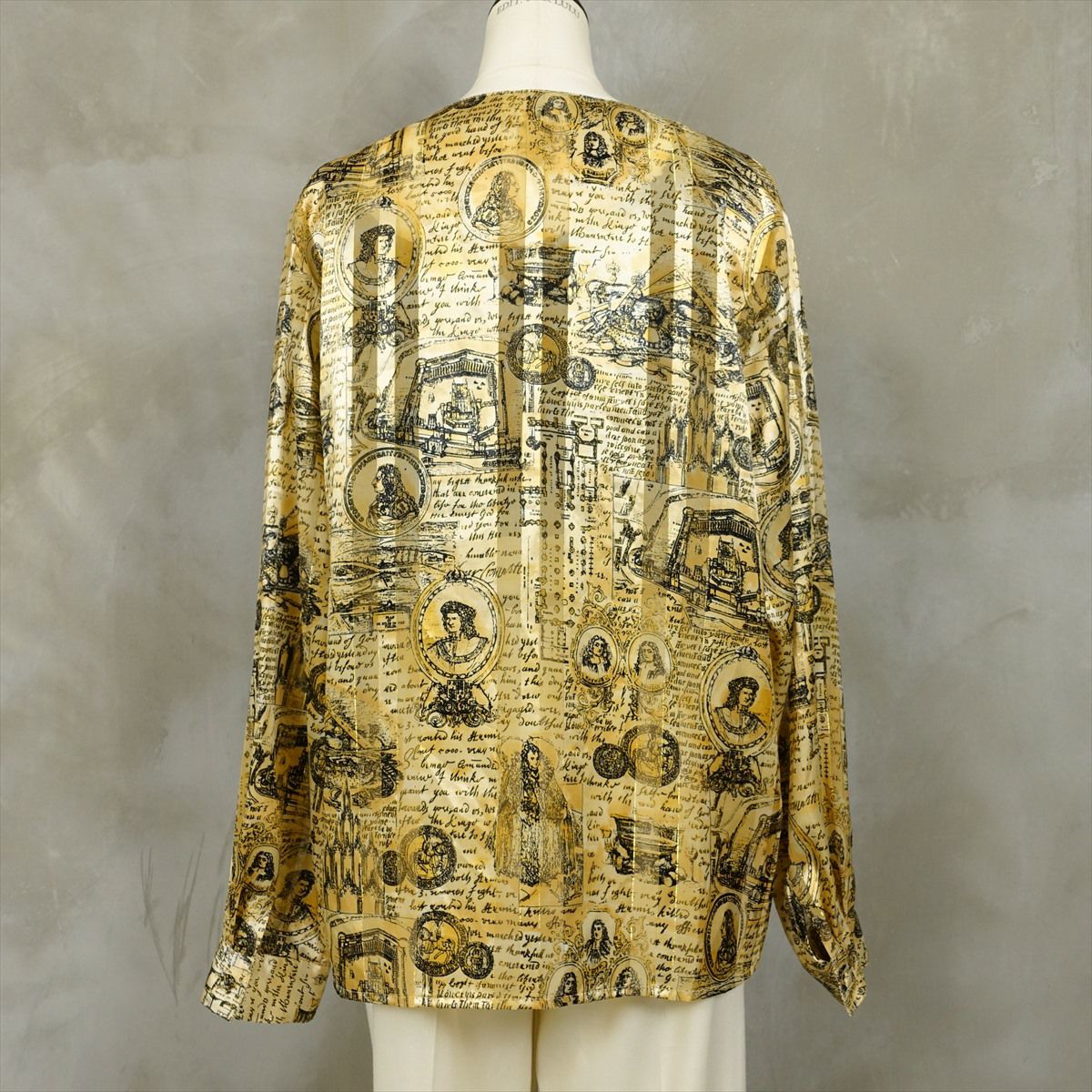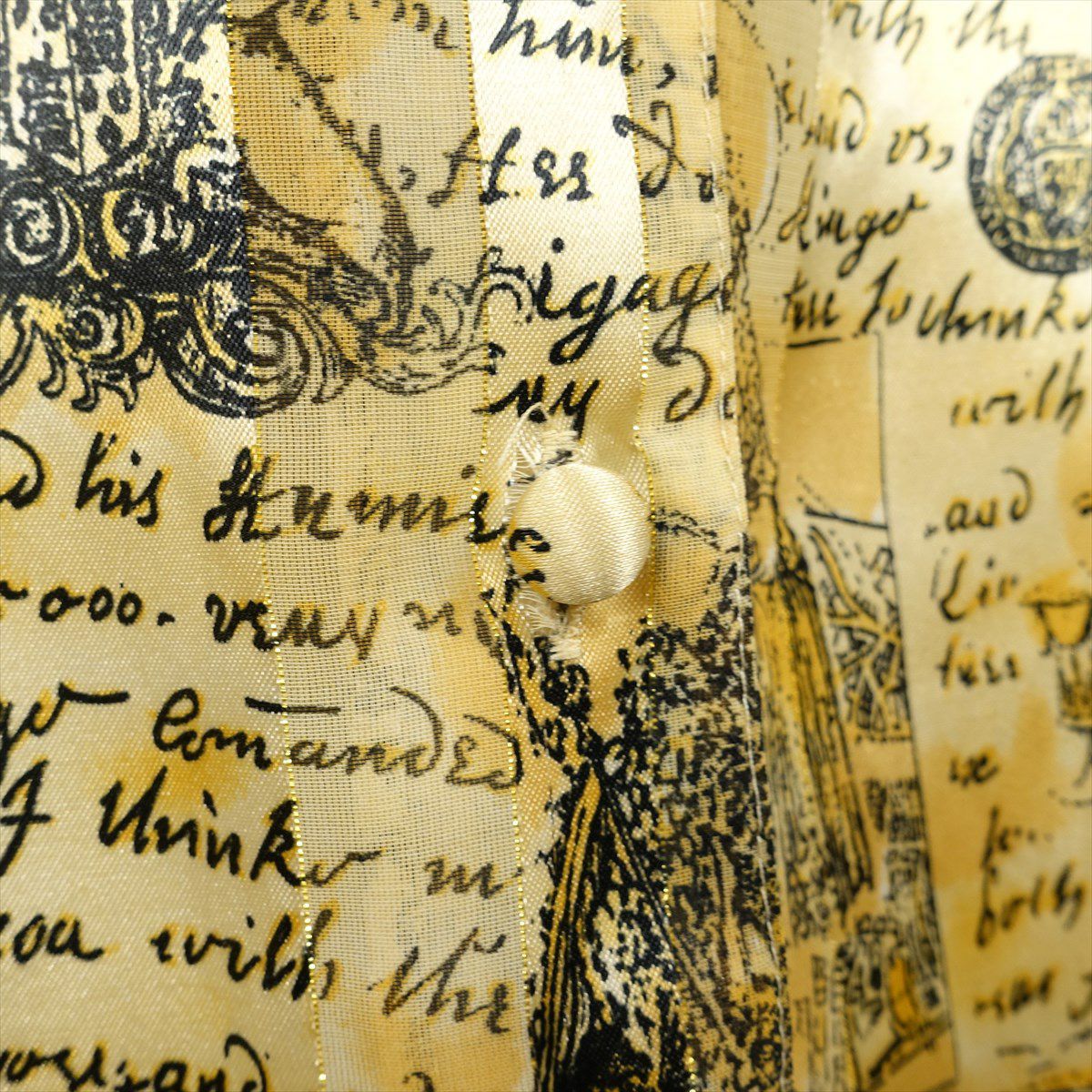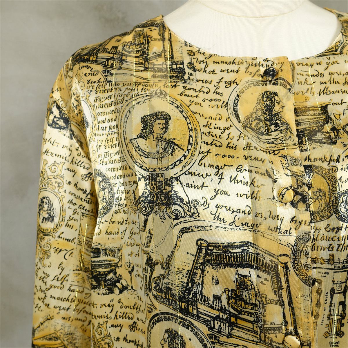 古着 ノーカラー シースルーストライプ 英国柄 ゴールド 長袖シャツ