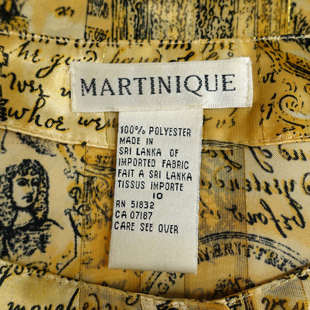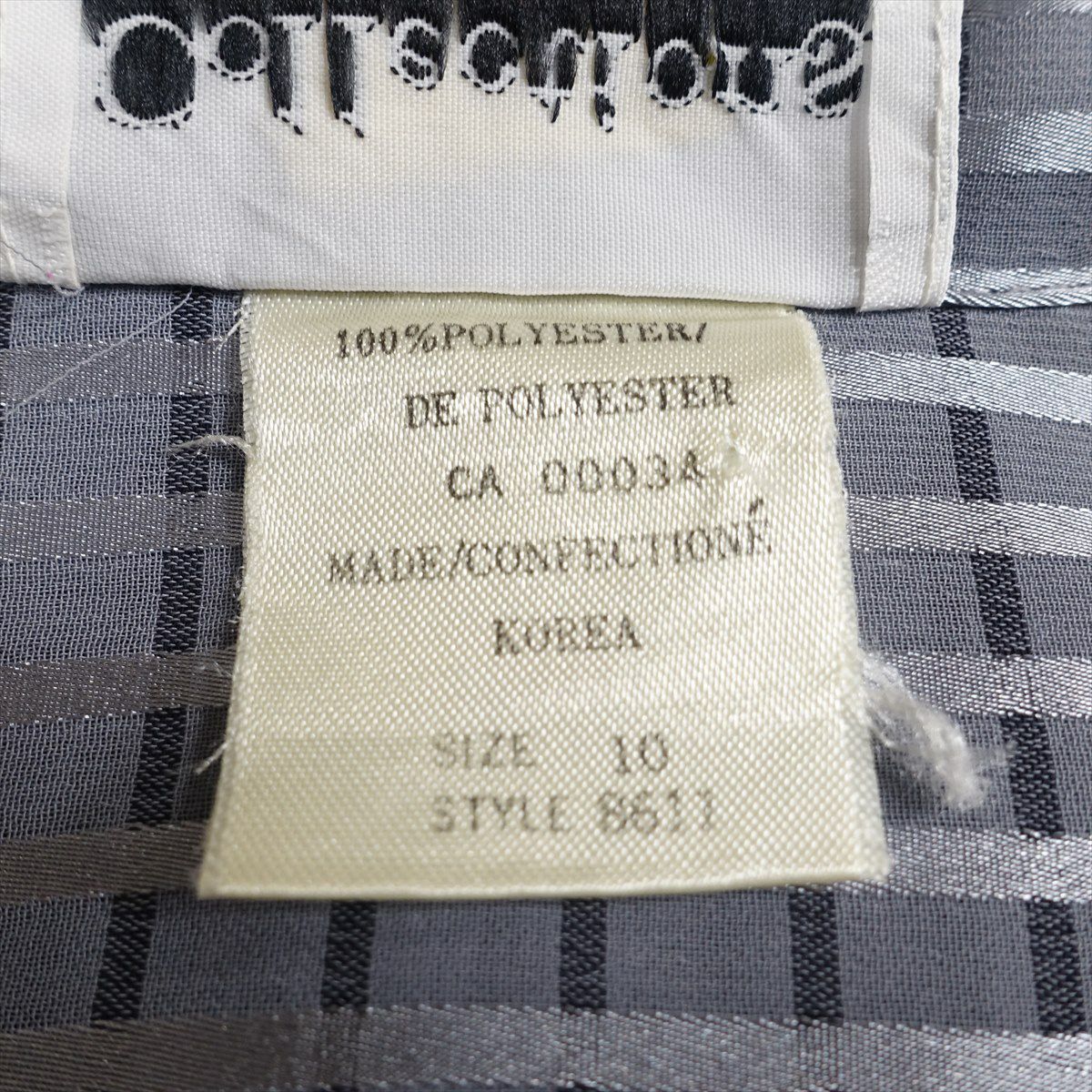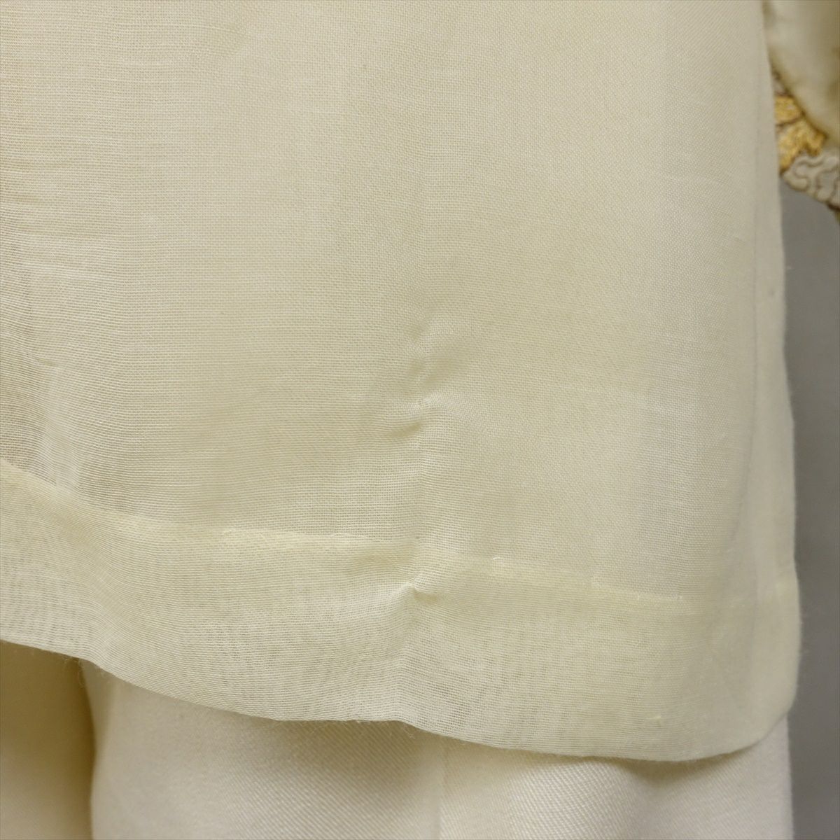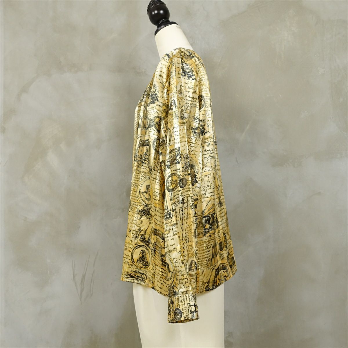 古着 ノーカラー シースルーストライプ 英国柄 ゴールド 長袖シャツ