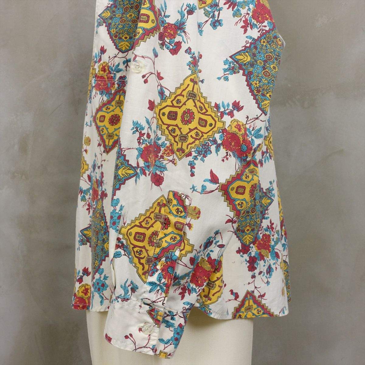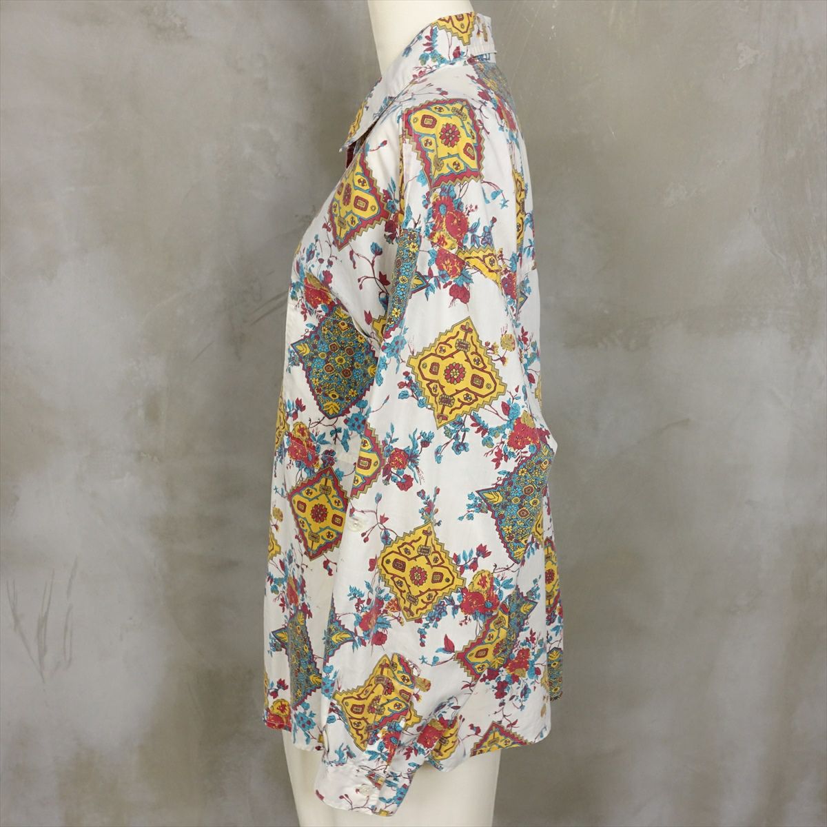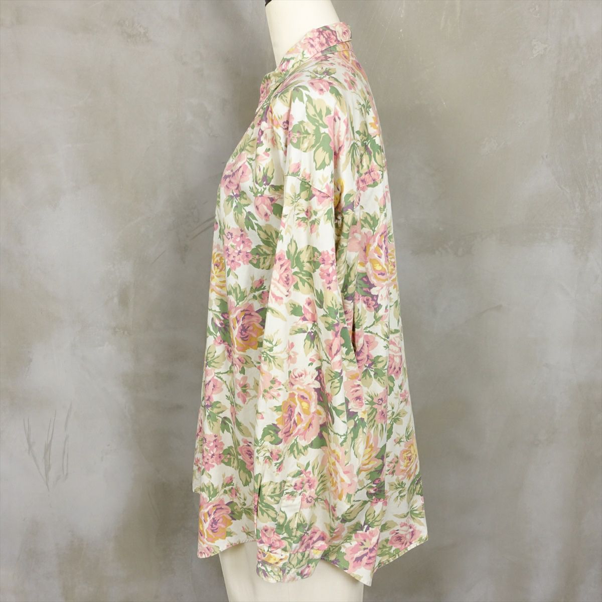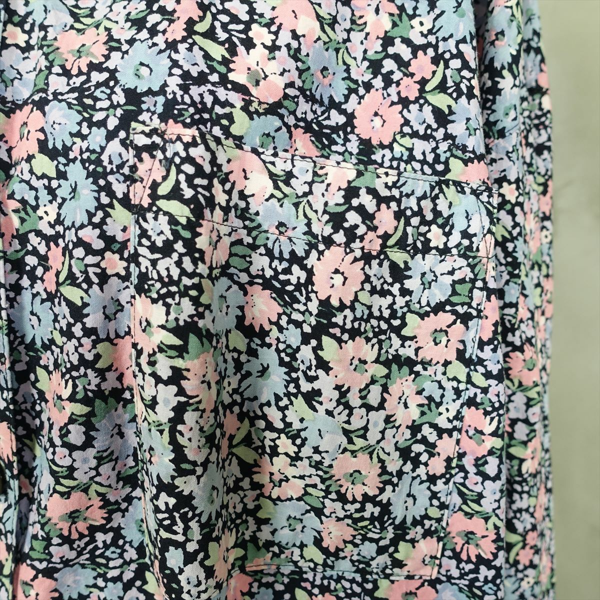 古着 花柄 ラウンドカット 長袖シャツ