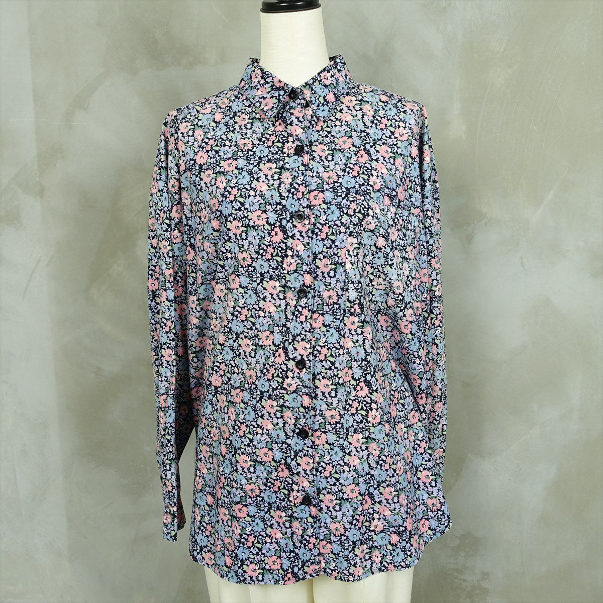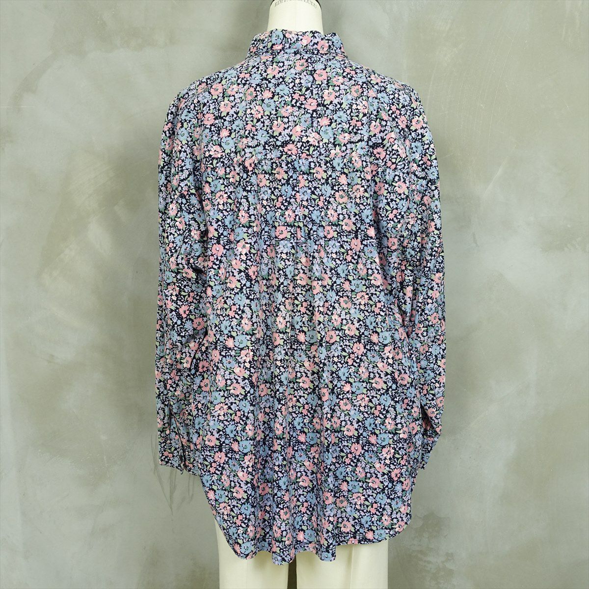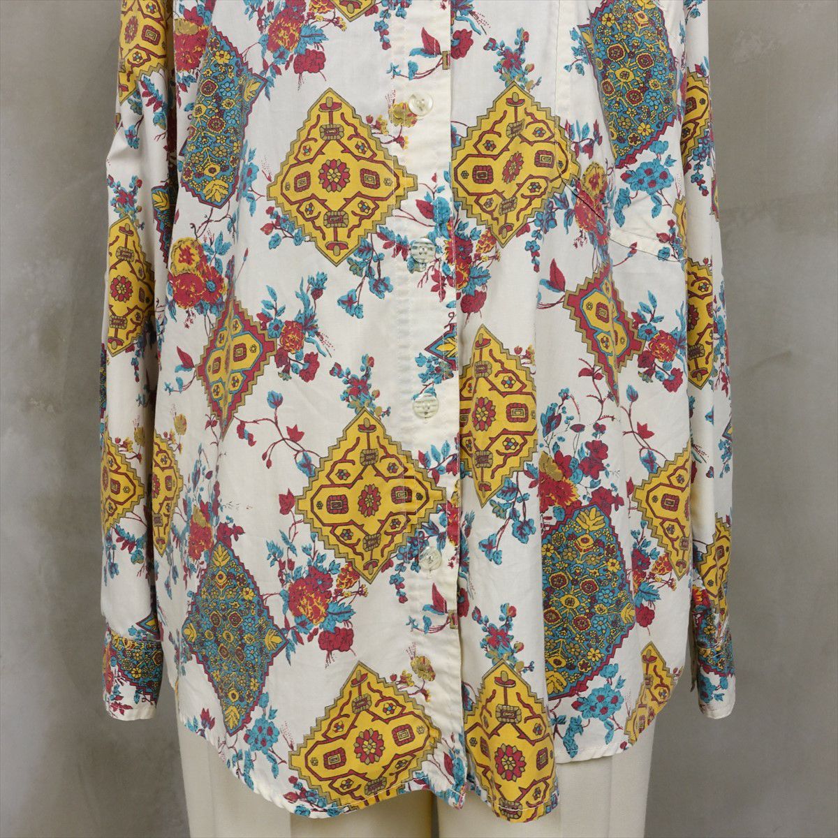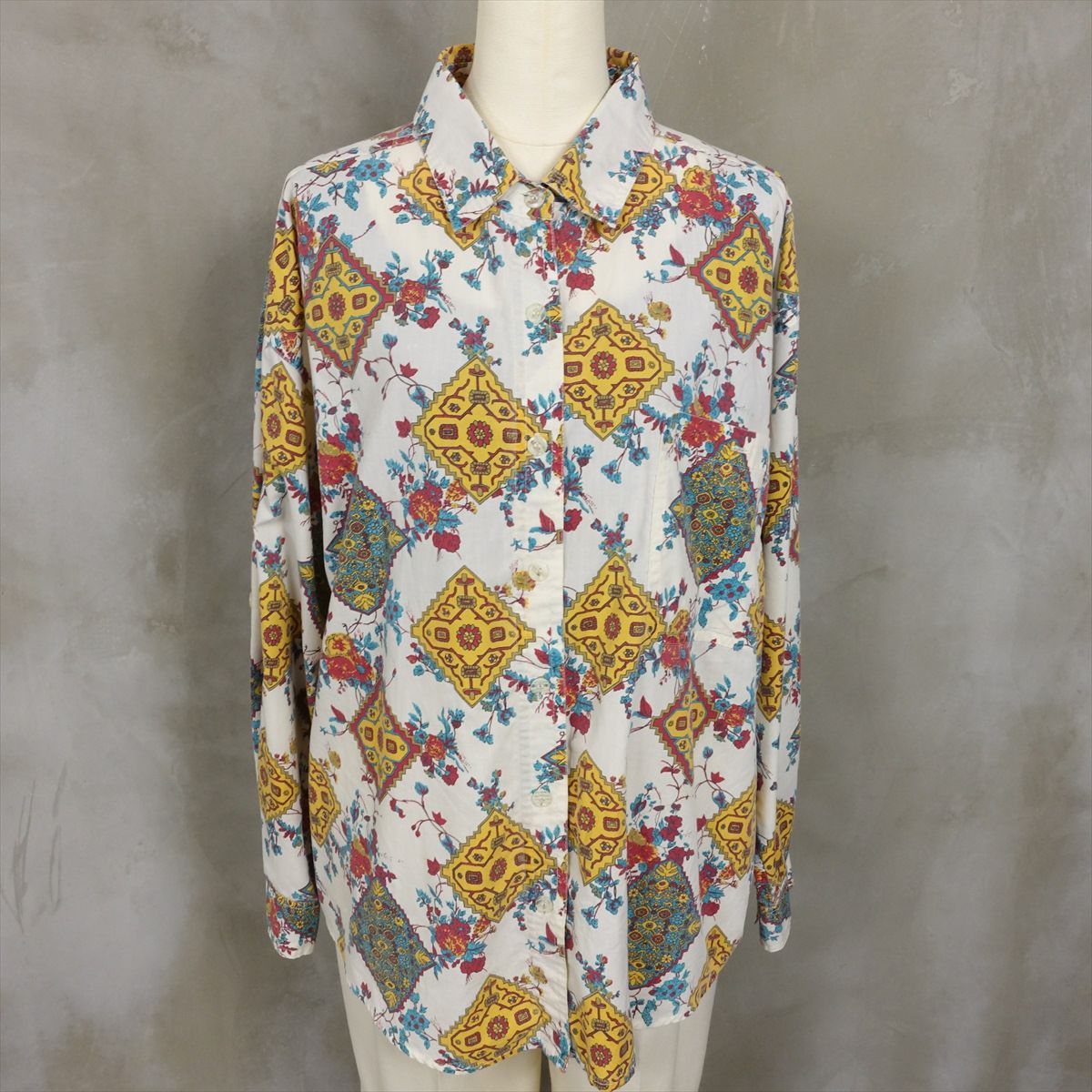 古着 花柄 ラウンドカット 長袖シャツ