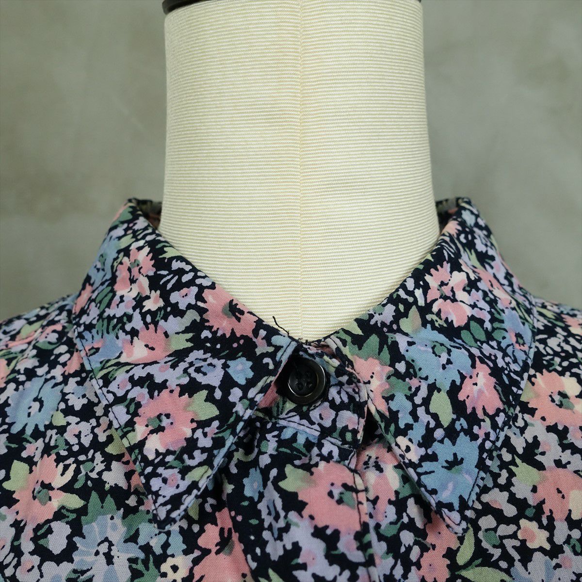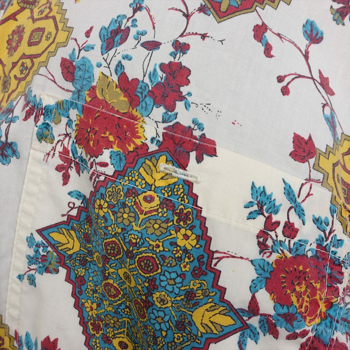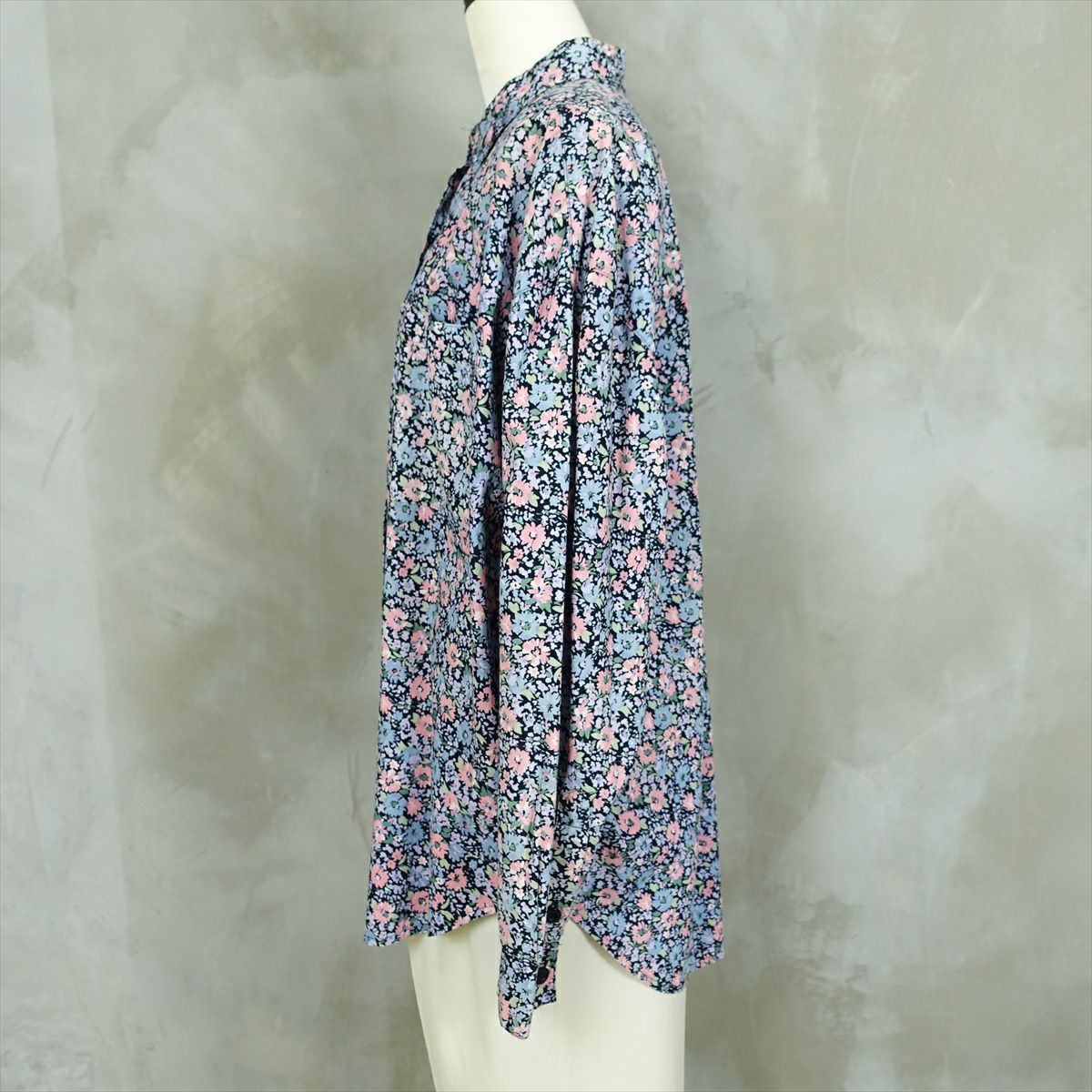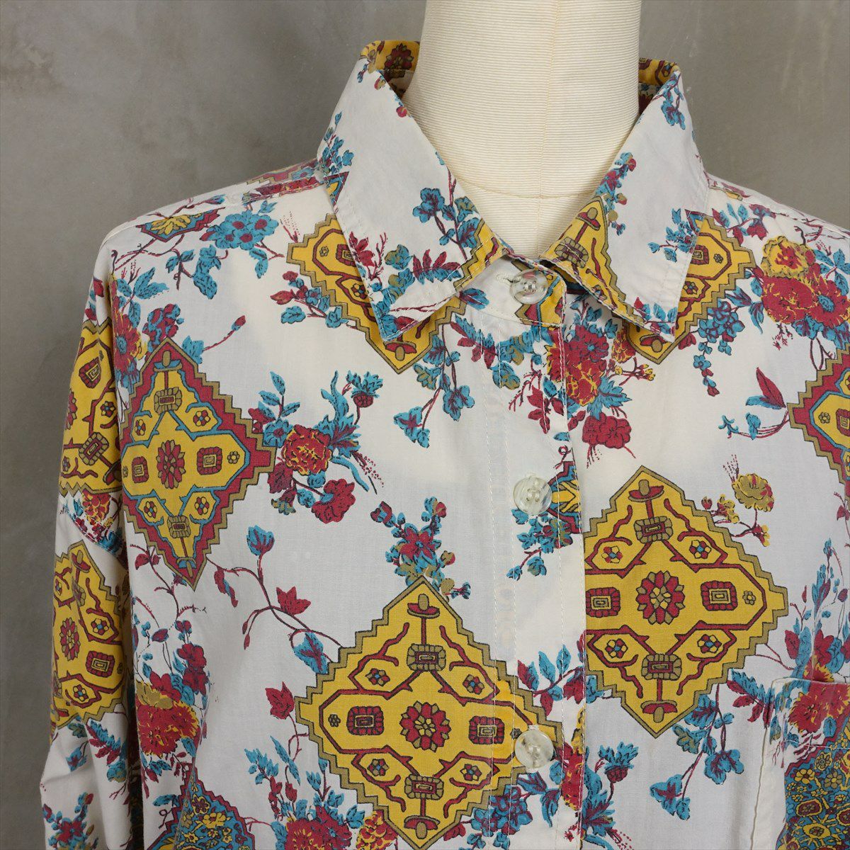 古着 花柄 ラウンドカット 長袖シャツ