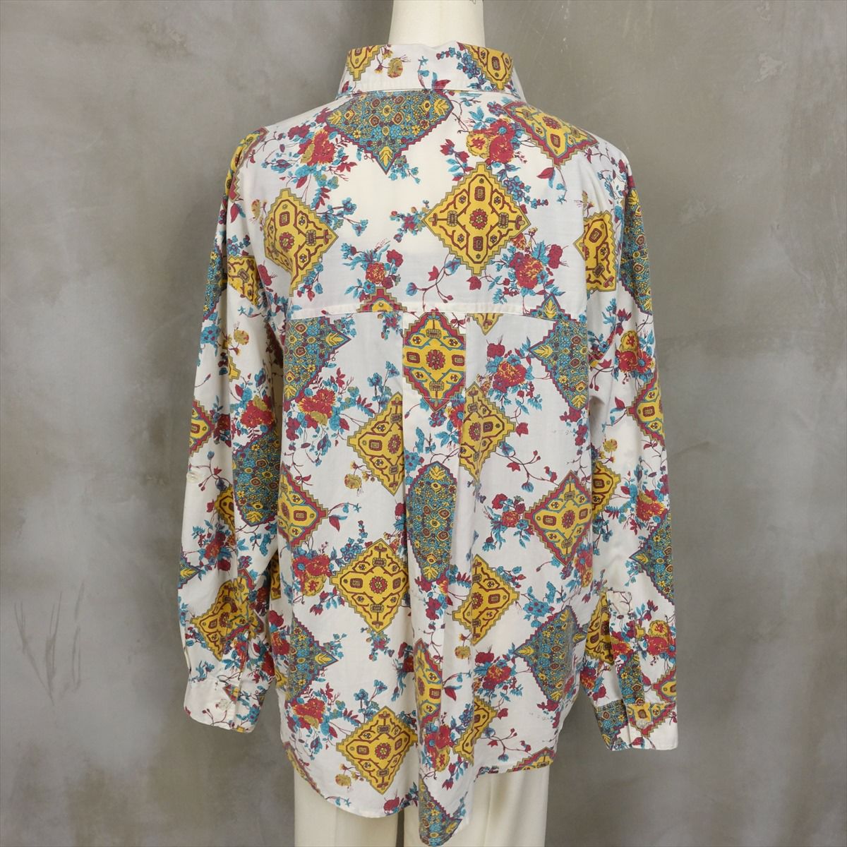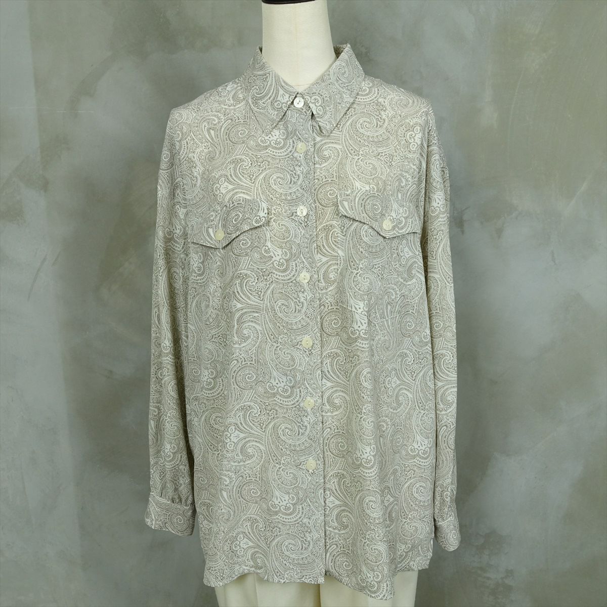 古着 ペイズリー柄 ホワイト 長袖シャツ