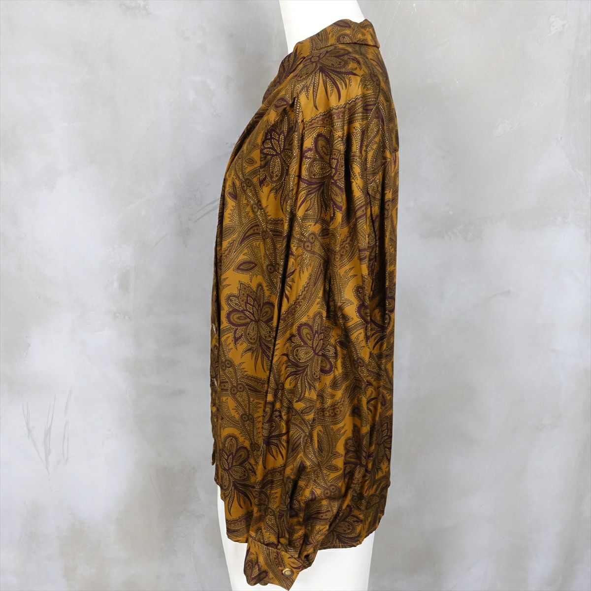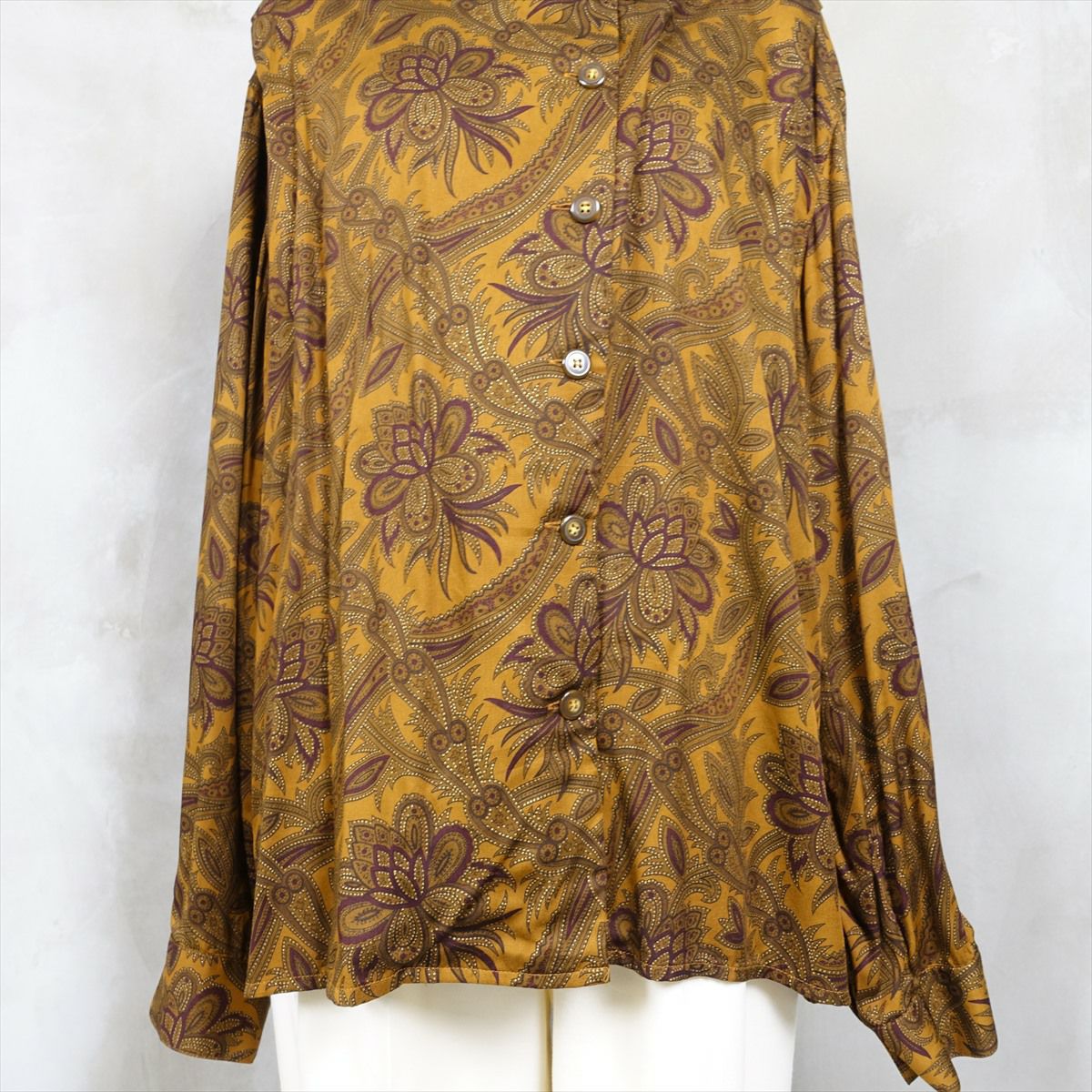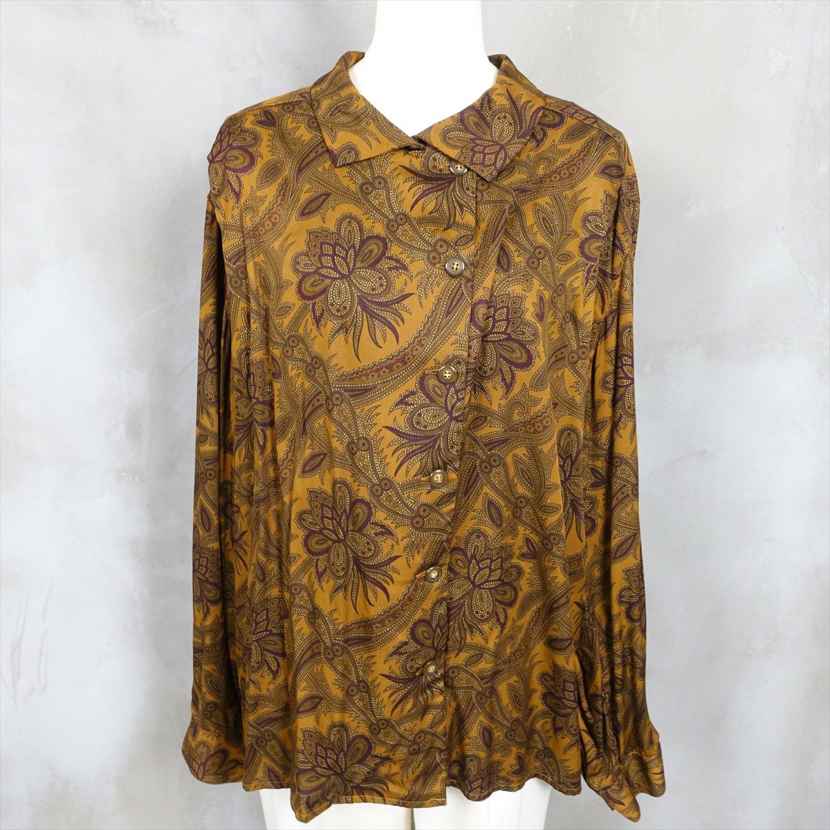 古着 アースカラー ペイズリー柄 レーヨン長袖シャツ