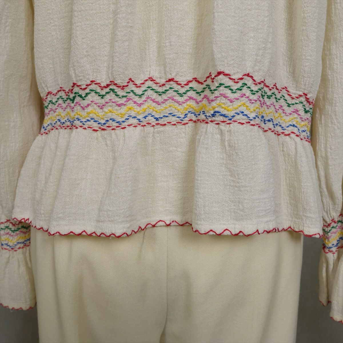 古着 インド綿 カラフル刺繍 民族ブラウス
