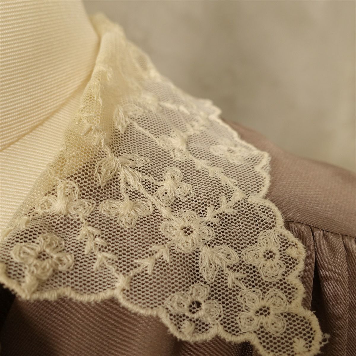 古着 オープンカラー レースデザイン 長袖ブラウス