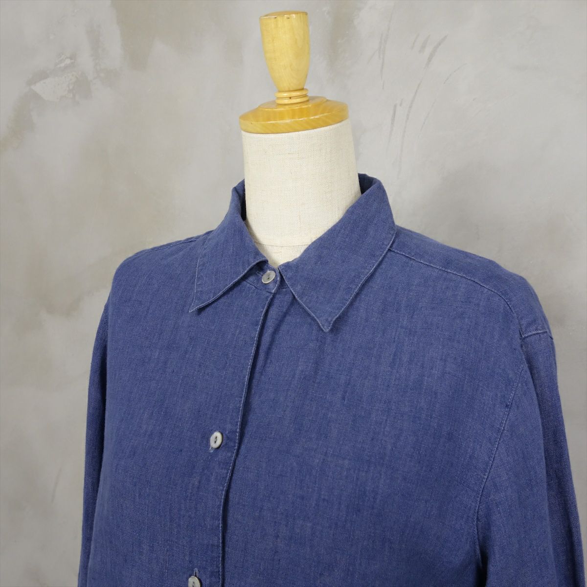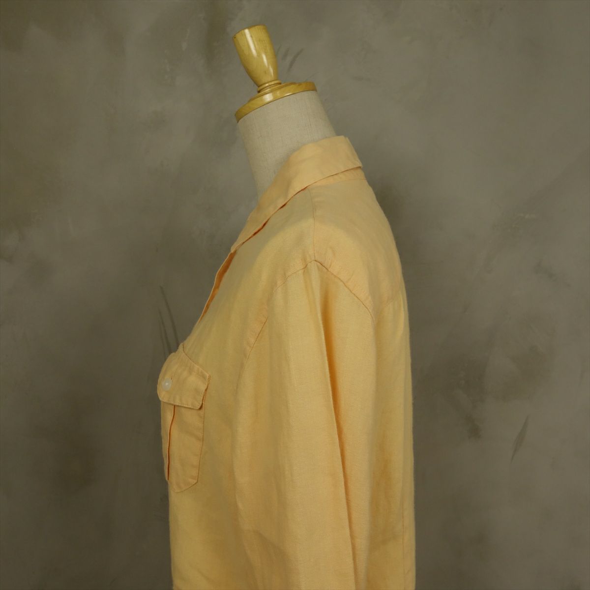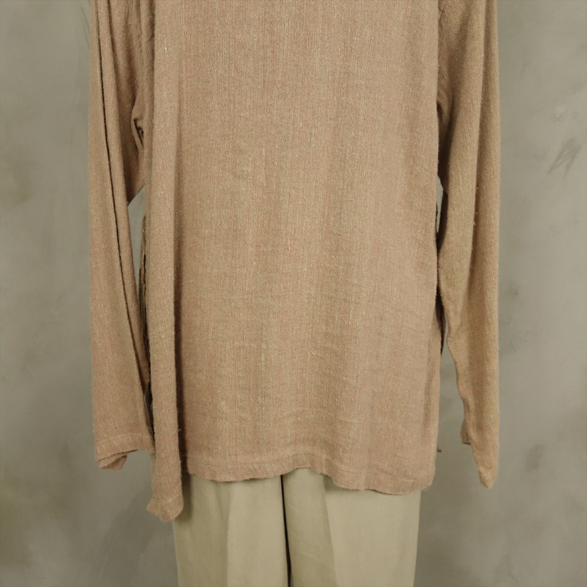 古着 ノーカラー リネン長袖シャツ