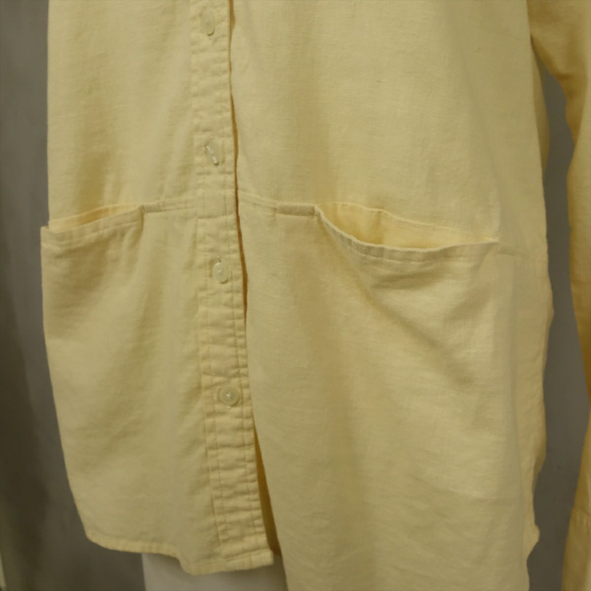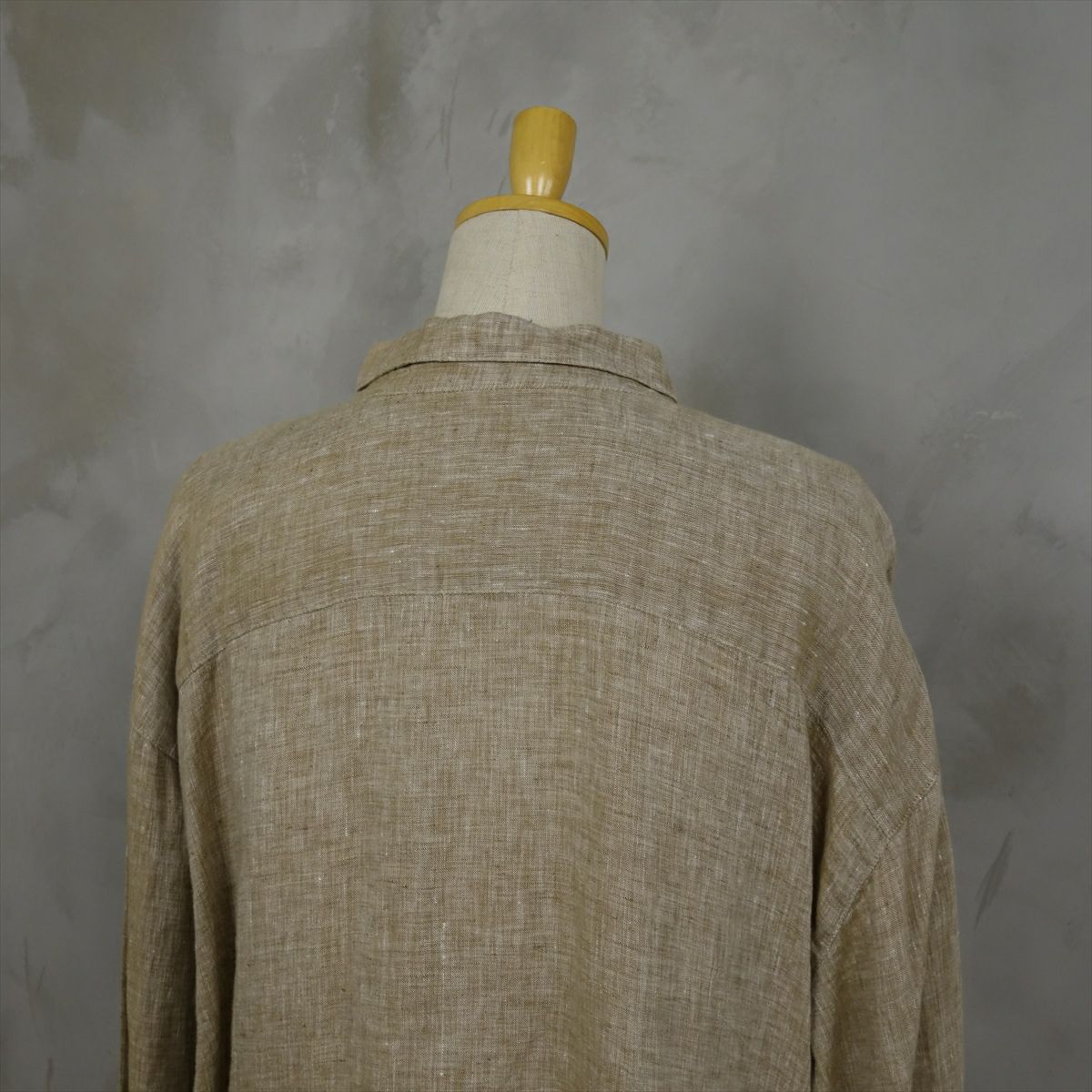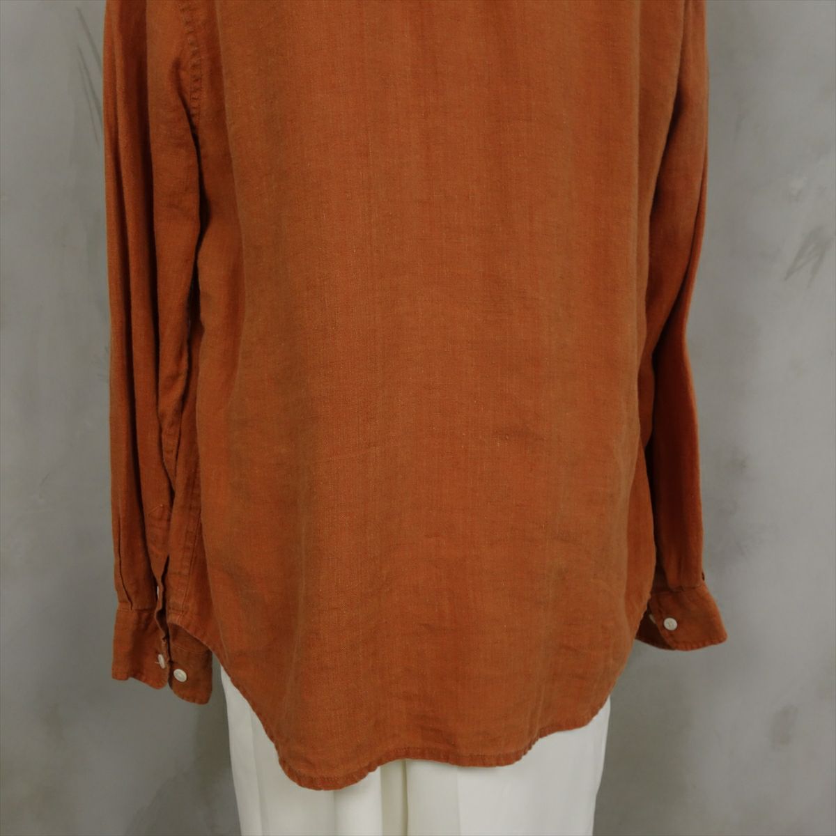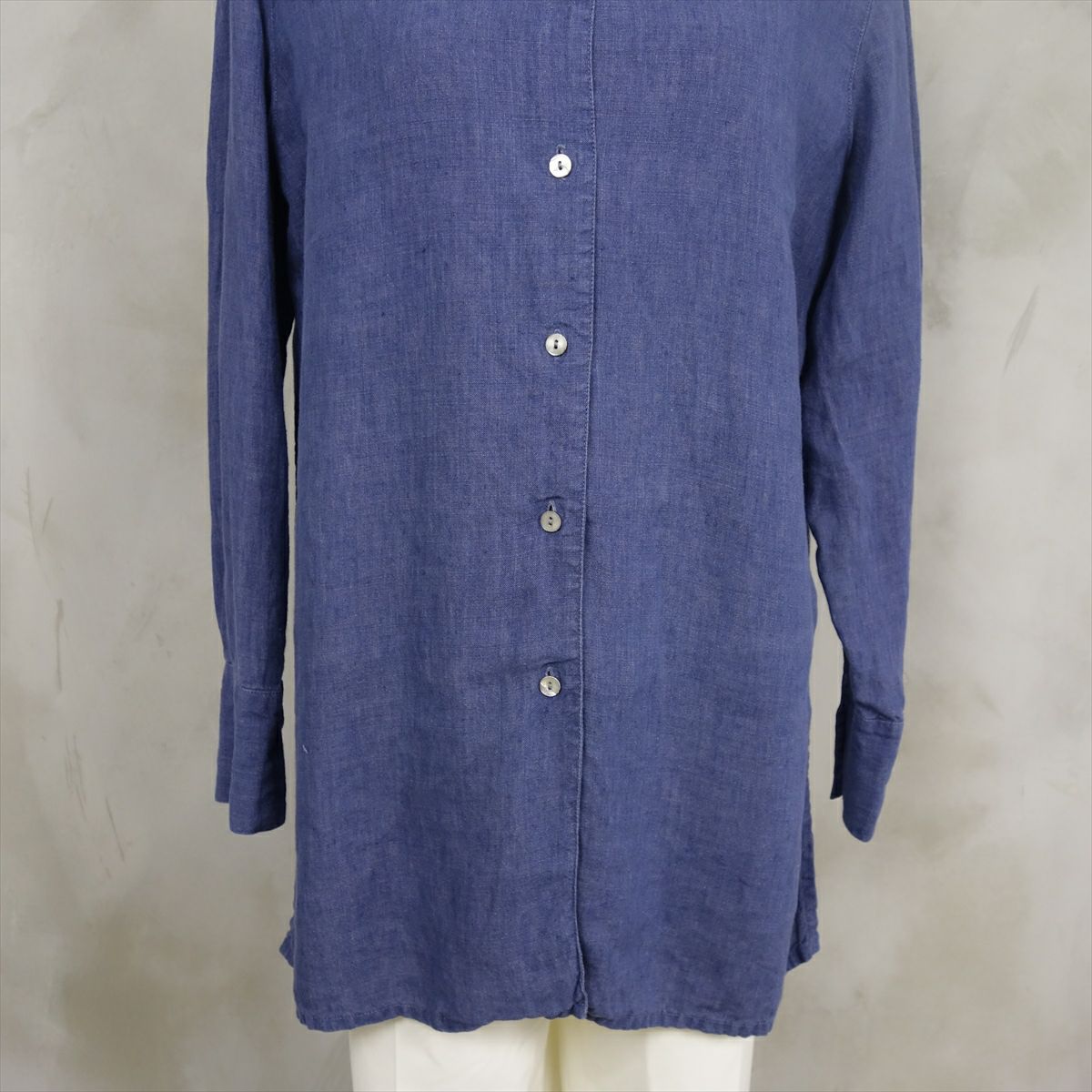 古着 リネン ノーカラー 長袖シャツ