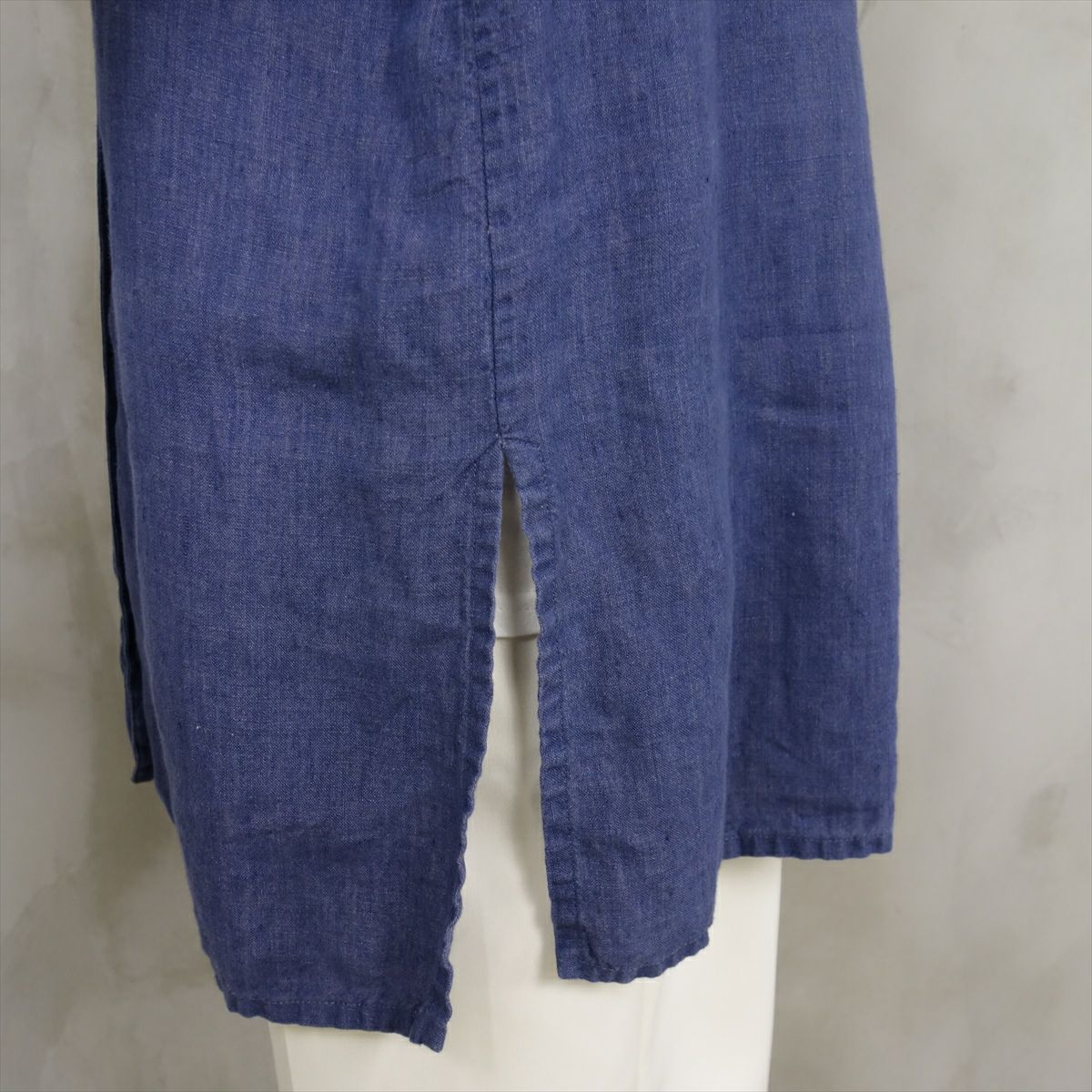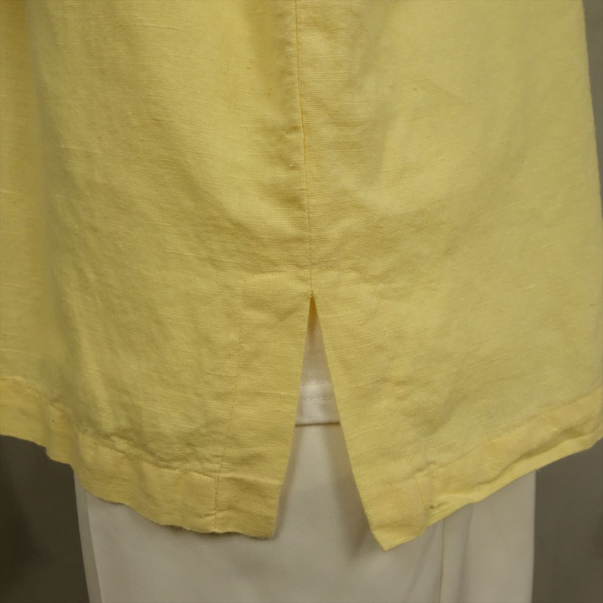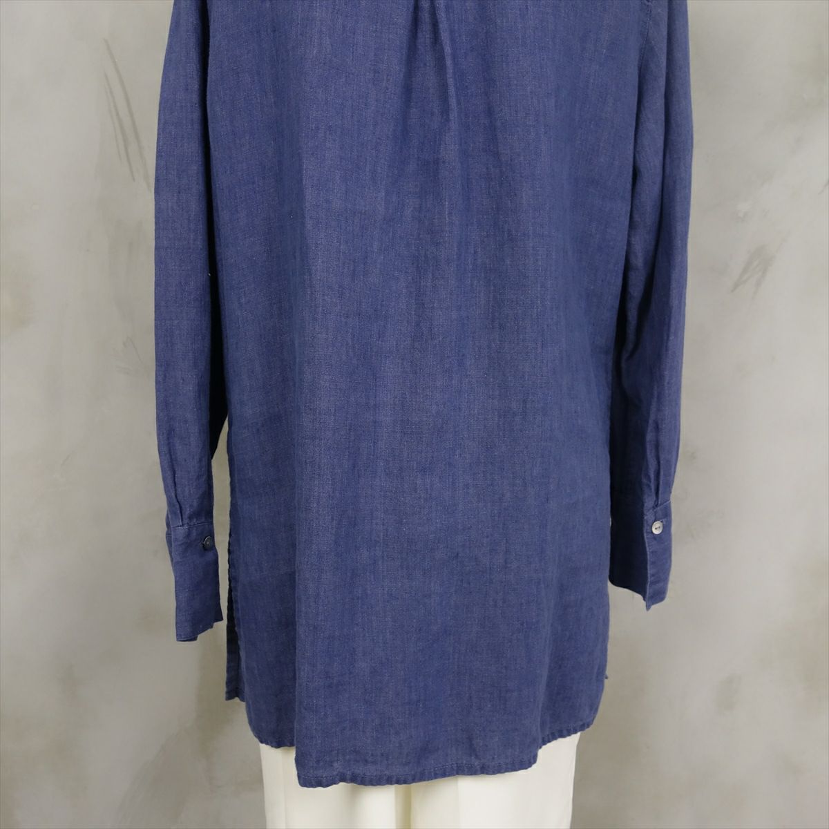 古着 リネン ノーカラー 長袖シャツ