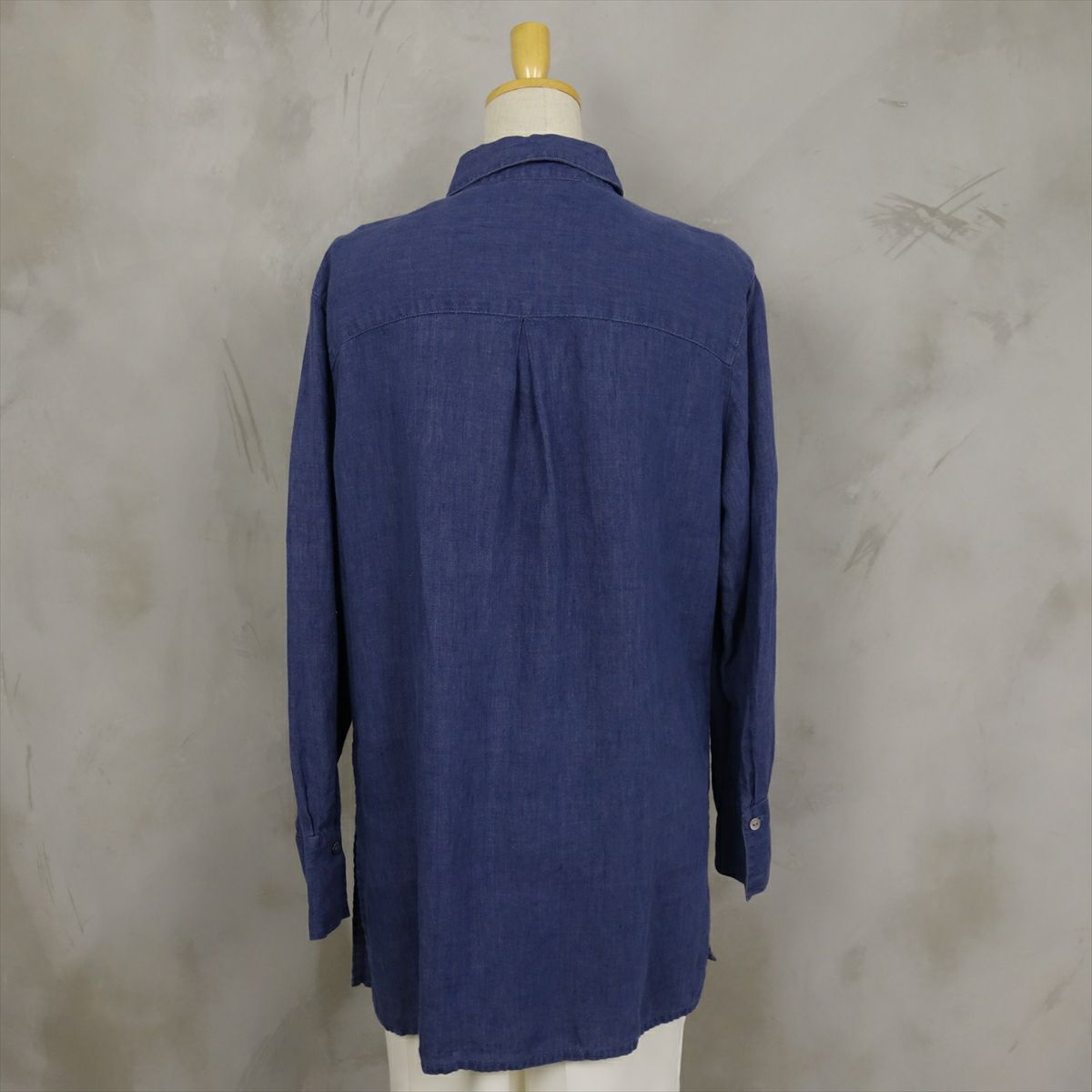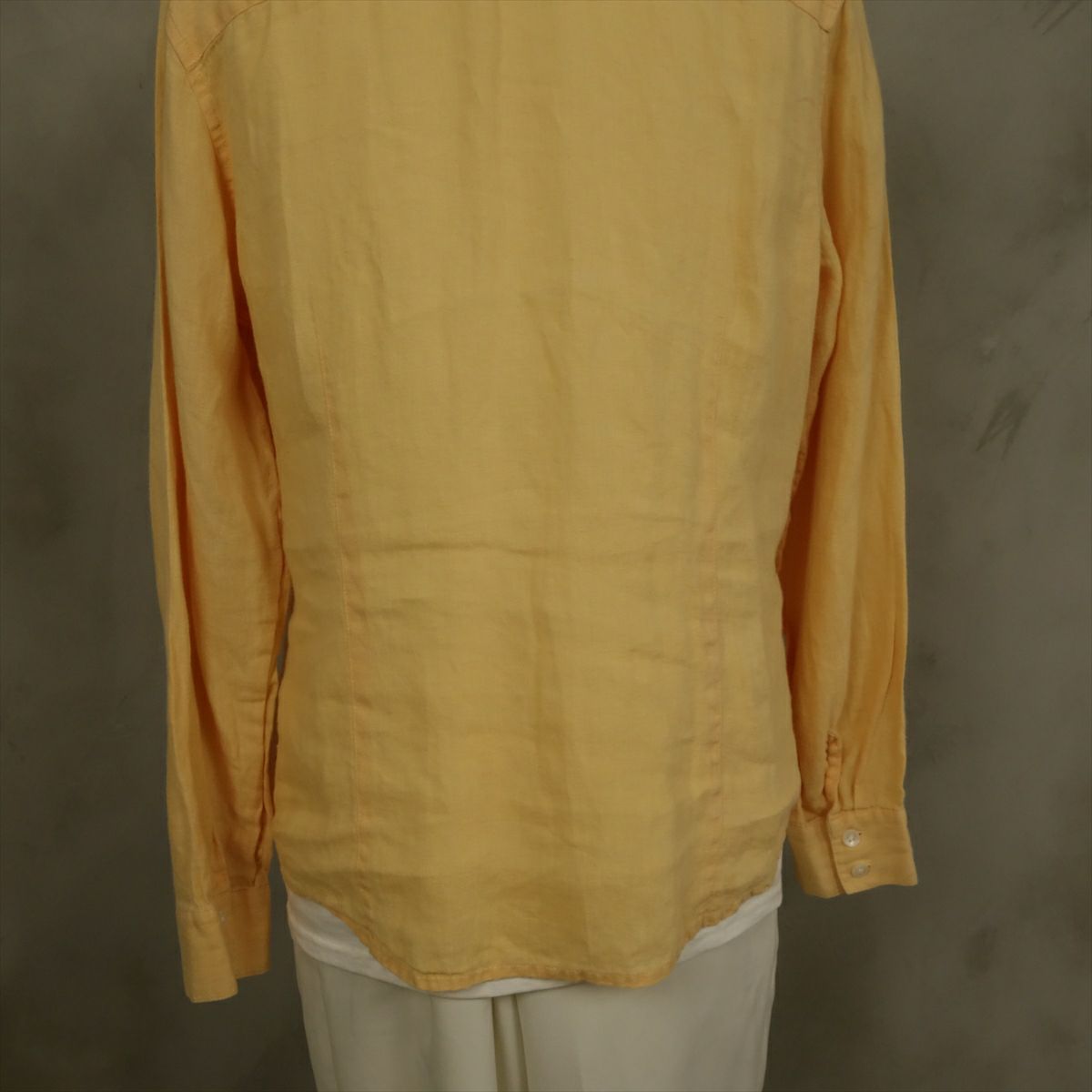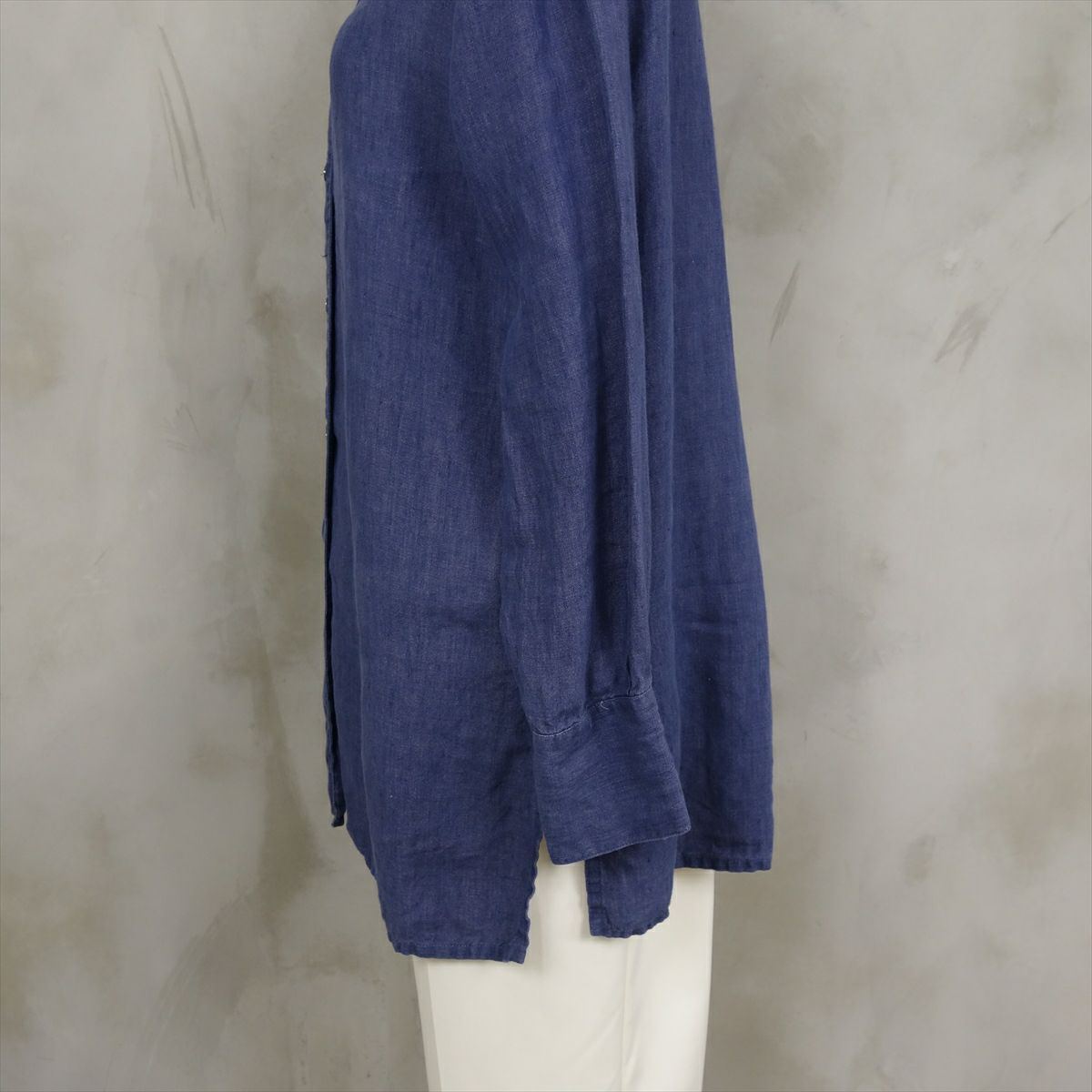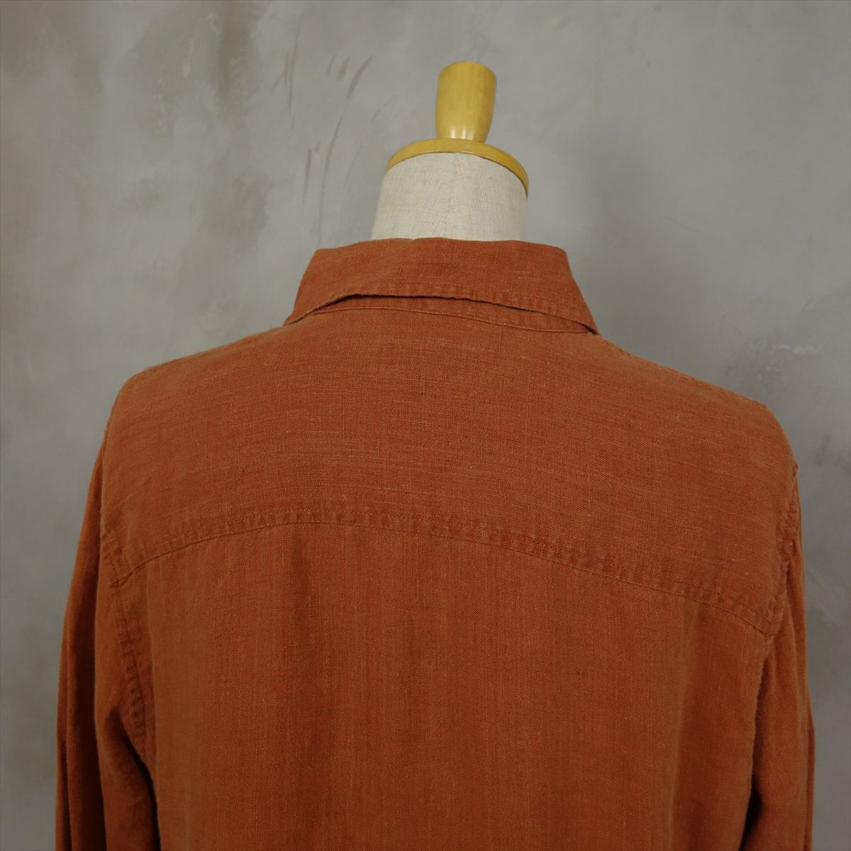 古着 リネン ノーカラー 長袖シャツ