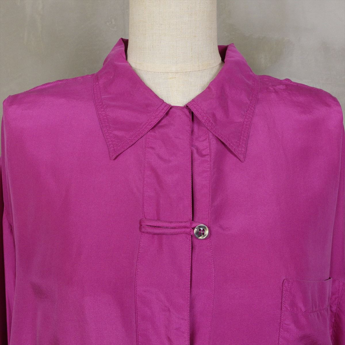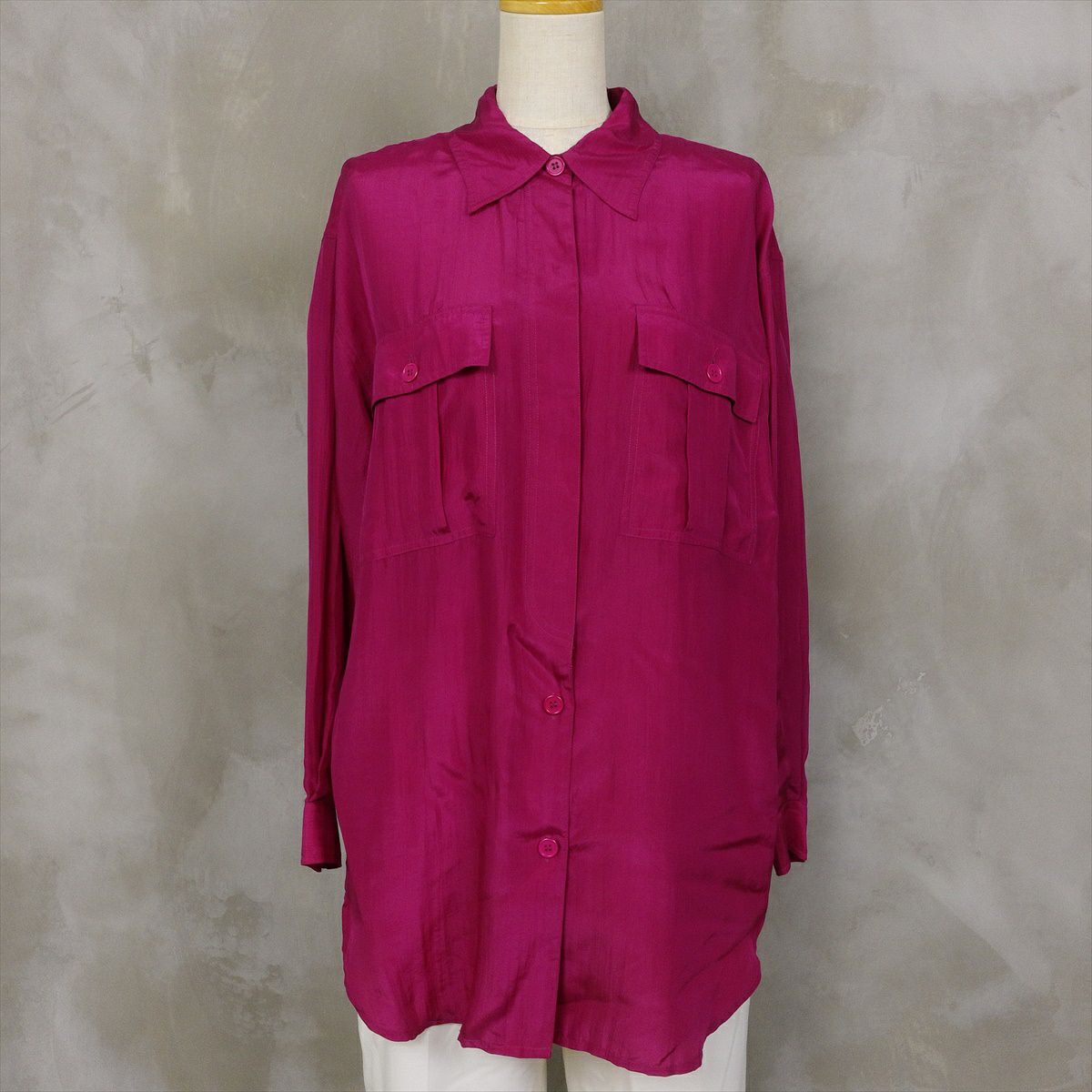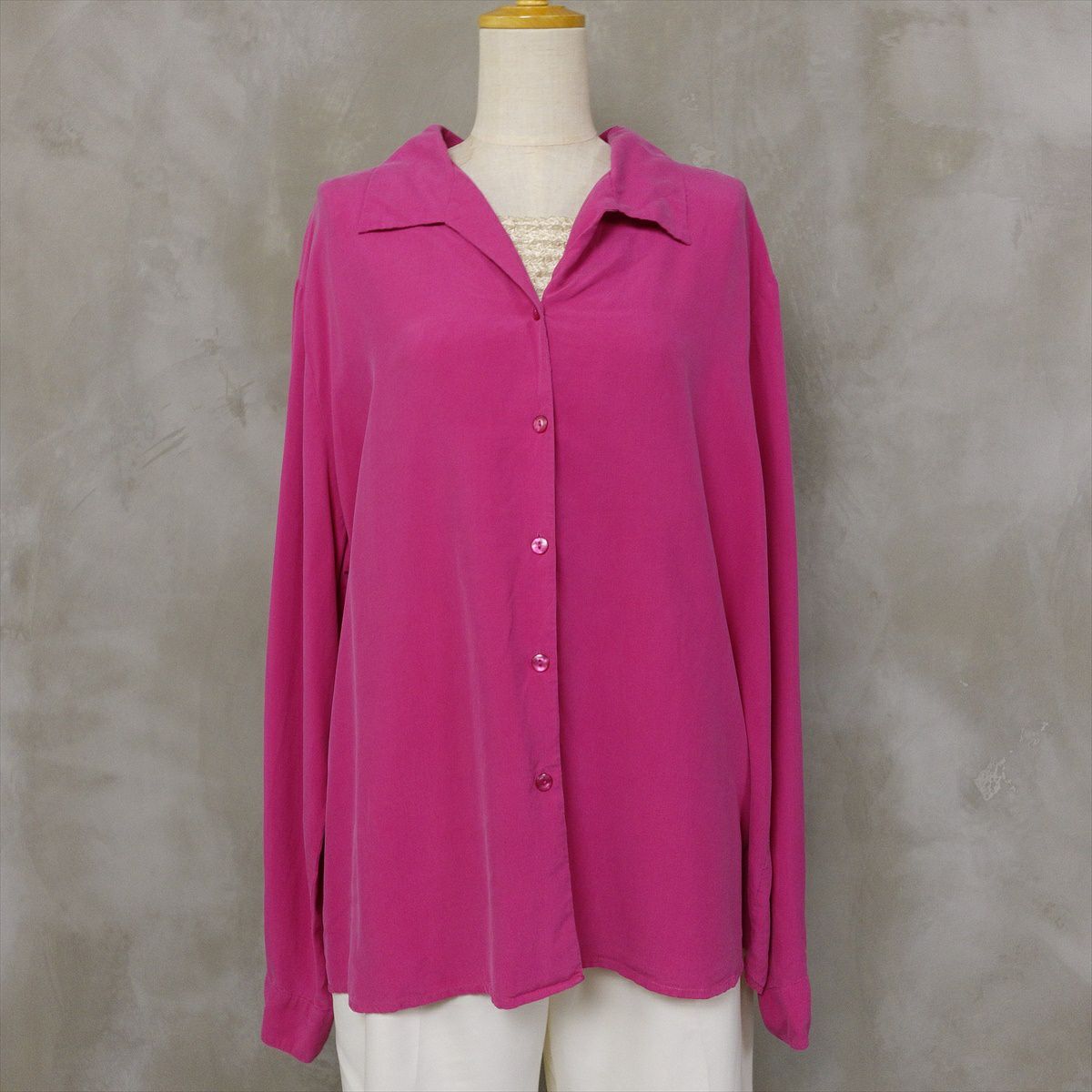 古着 シルク 無地 長袖シャツ
