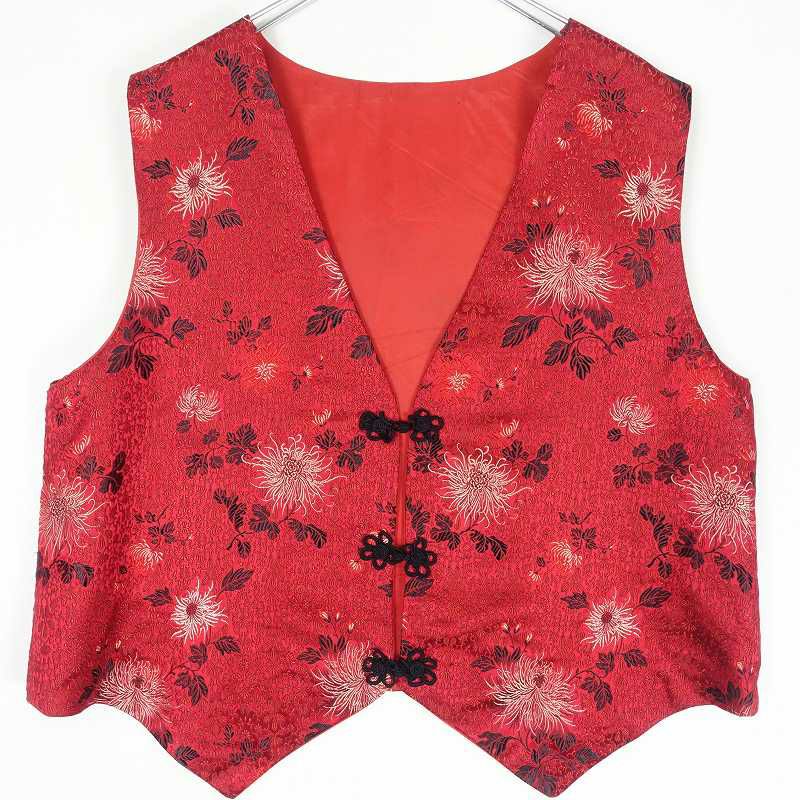 古着 チャイナボタン 総柄ベスト
