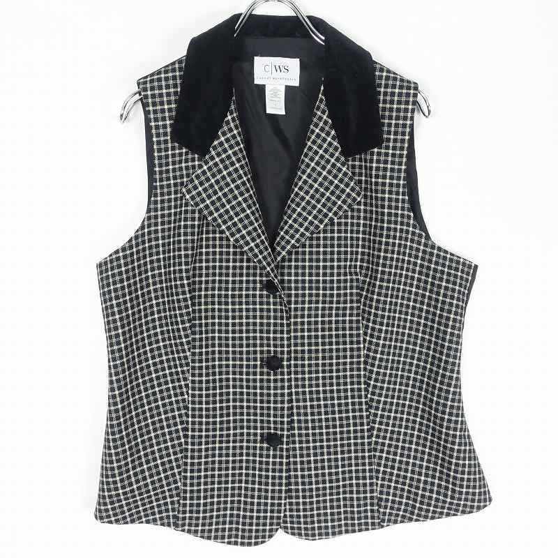 古着 CWS ベロア切替 チェックベスト