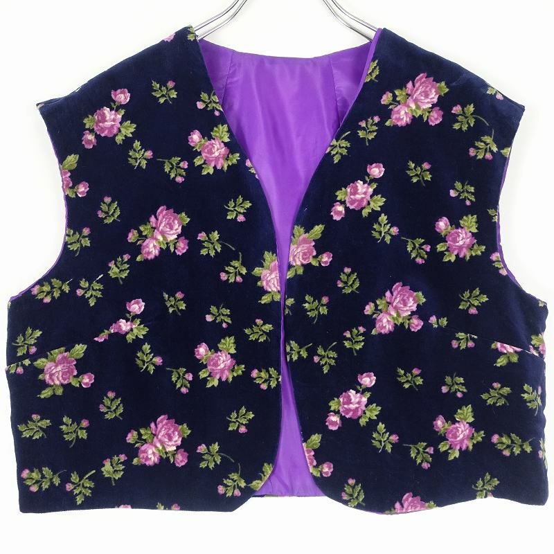 古着 花柄 ベロアベスト