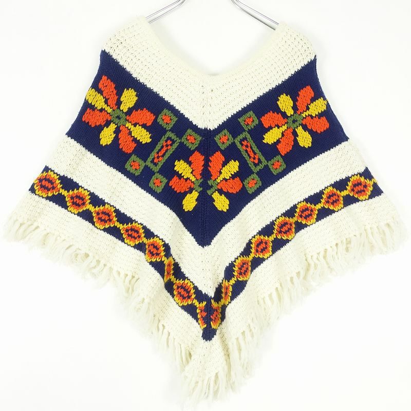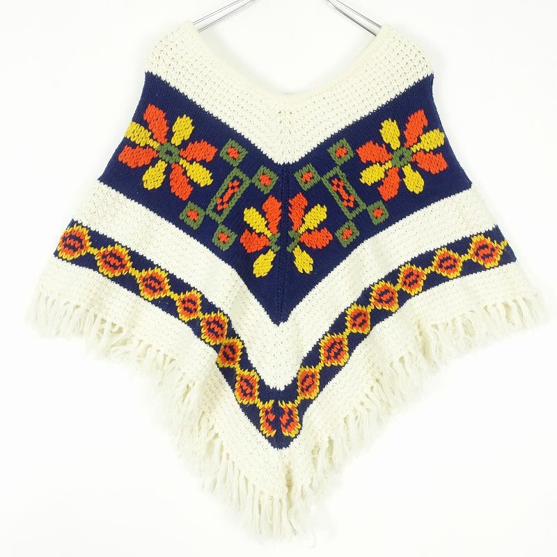 古着 70s フリンジ付き ポンチョ