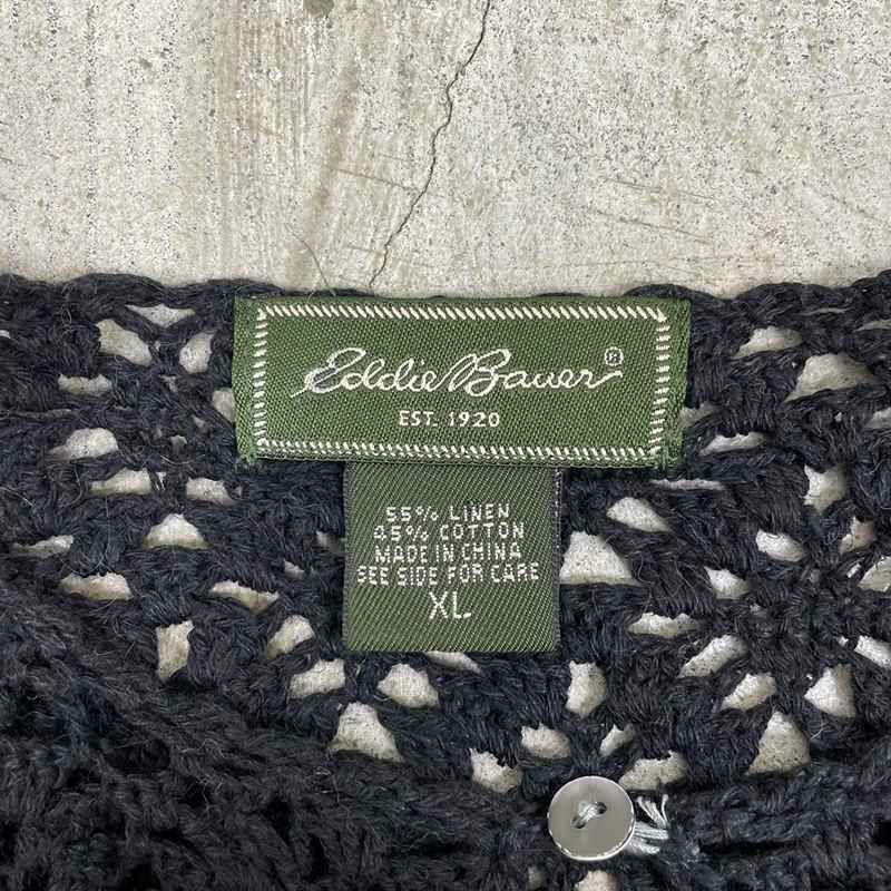 古着 Eddie Bauer リネン コットン 鍵あみ カーディガン