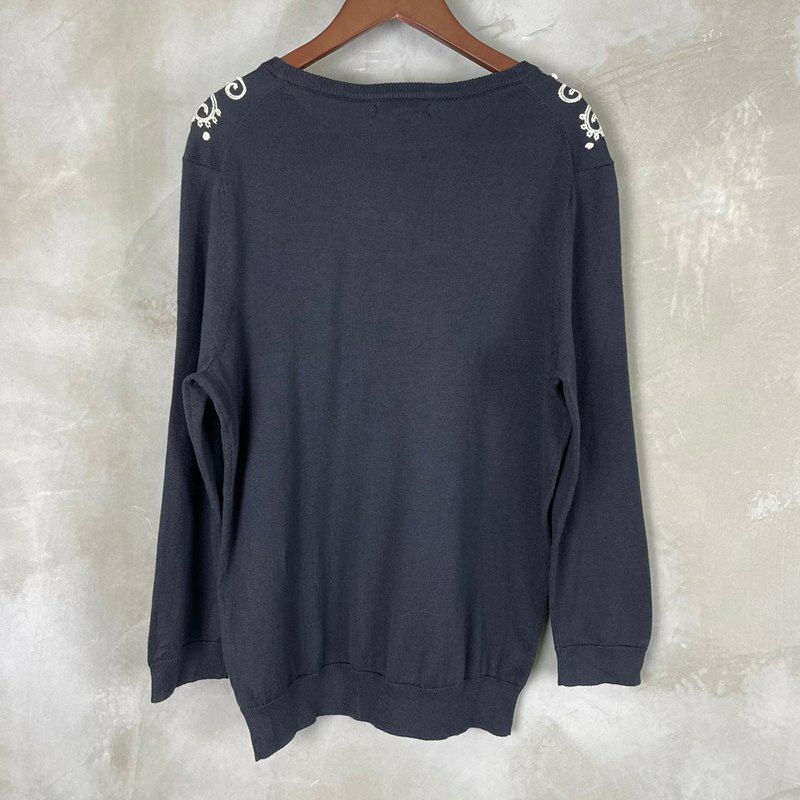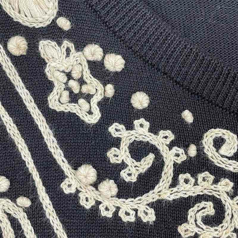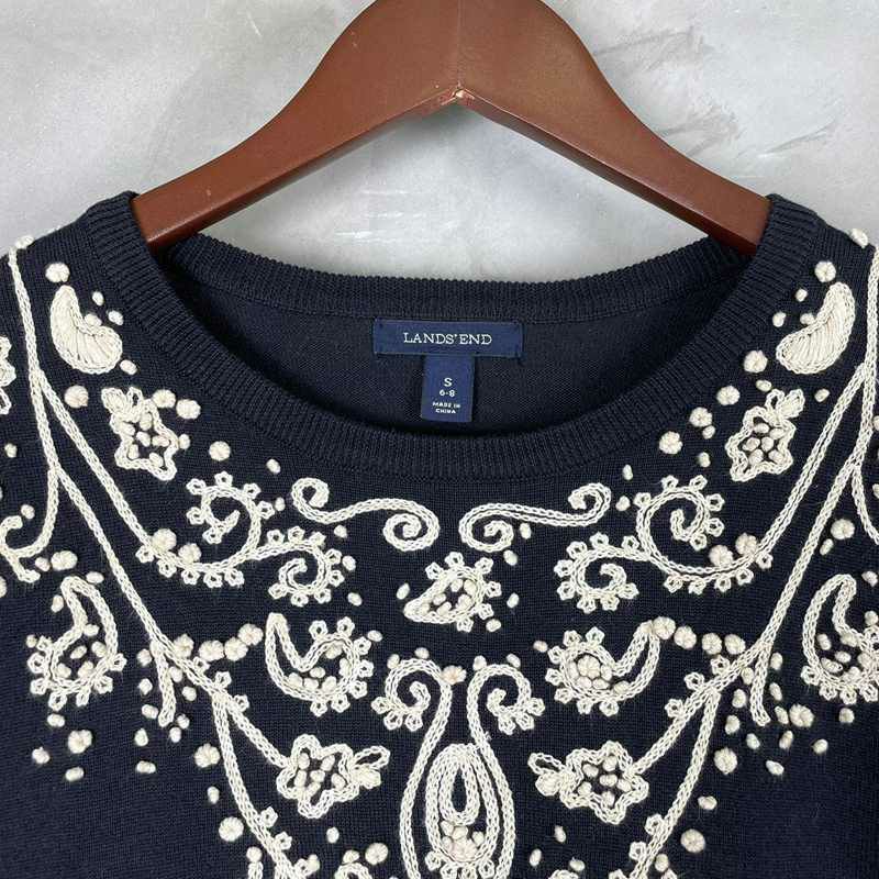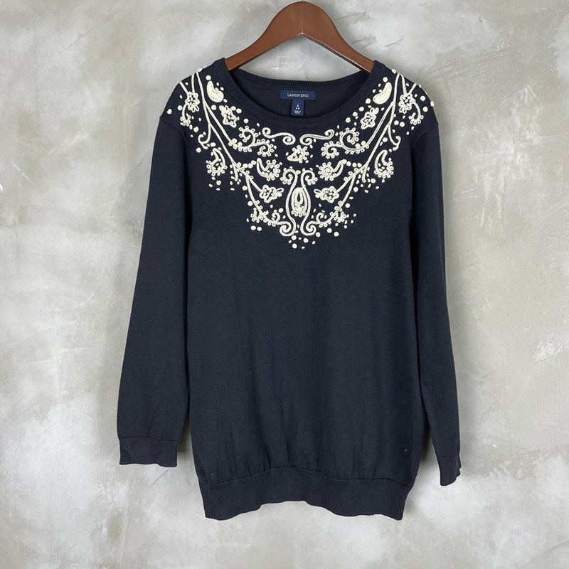 古着 LANDS'END コットン ペイズリー刺繍柄 セーター