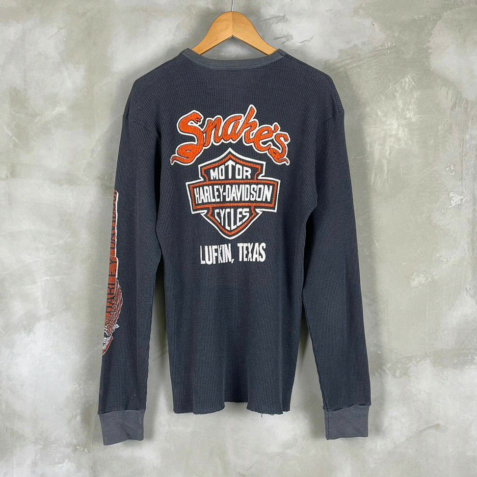 古着 the knits Harley Davidson プリント サーマル ロンT