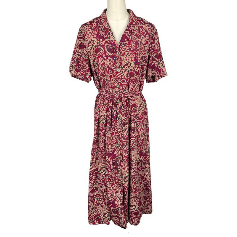 古着 LESLIE FAY ペイズリー柄 前開き ワンピース