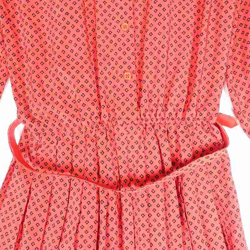 古着 小紋柄 ベルト付き 長袖ワンピース