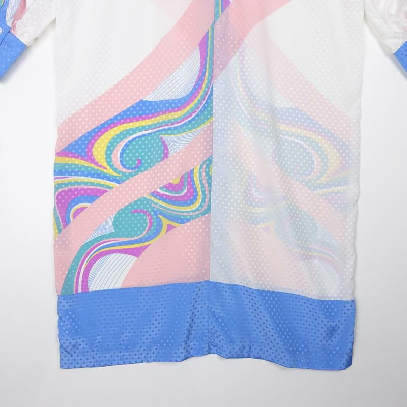 古着 幾何学柄 レーヨン 長袖ワンピース