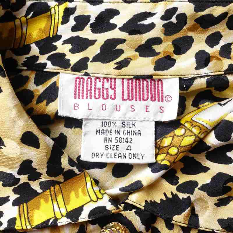 古着 アニマル柄 シルク 長袖シャツ
