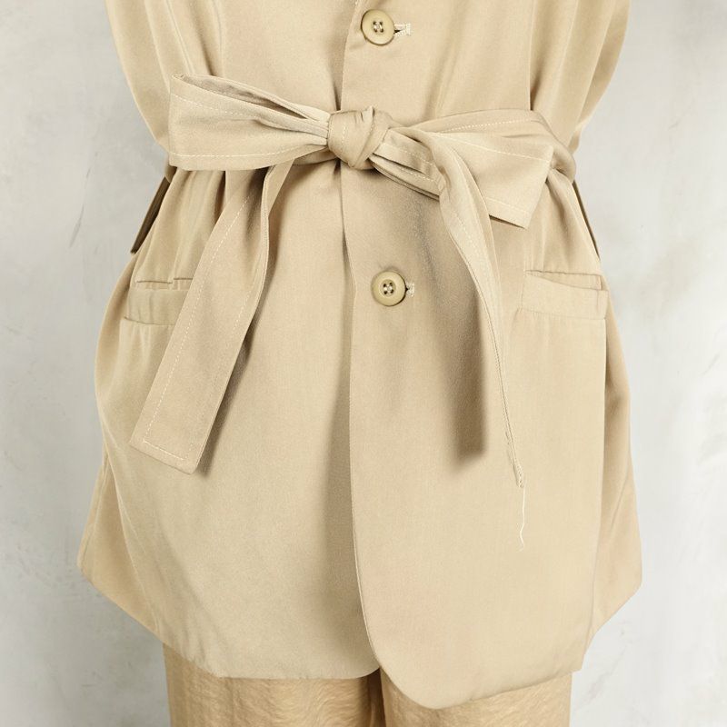 他の画像を見る fafatt ファファット テーラードベスト ベージュ 販売価格 ¥ 8,580 税込 ウエストを絞れるテーラード形のベストです。前を閉めてウエストを絞るのはもちろんですが、紐を取って前を開けて着るとまた違った格好いい雰囲気になります。シャツやTシャツを合わせて袖を見せたり、タンクトップを合わせて胸元だけ色を見せたりしても可愛いです。 カートに入れる お気に入りに登録する