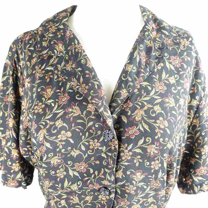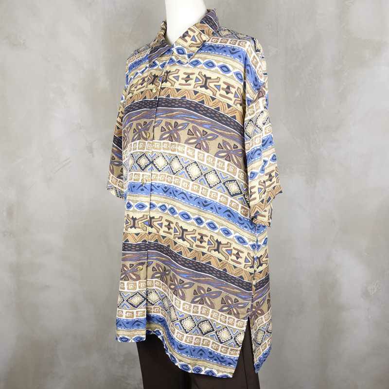 古着 総柄 シルク 半袖シャツ