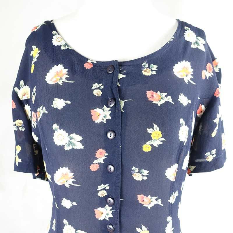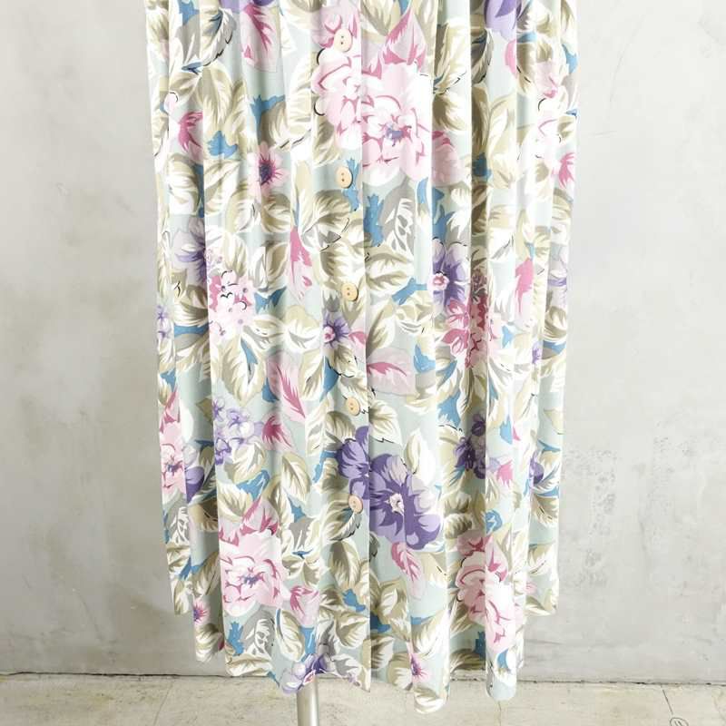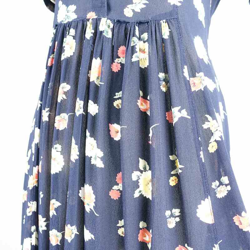 古着 透け感 花柄 レーヨン 半袖ワンピース