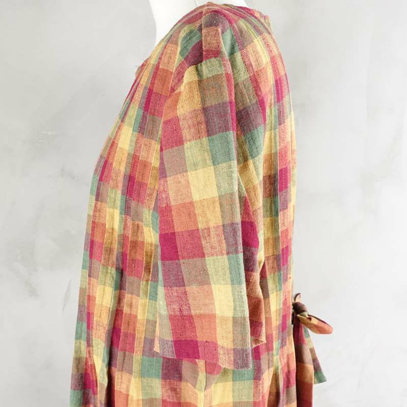 古着 チェック Iライン リネン ワンピース