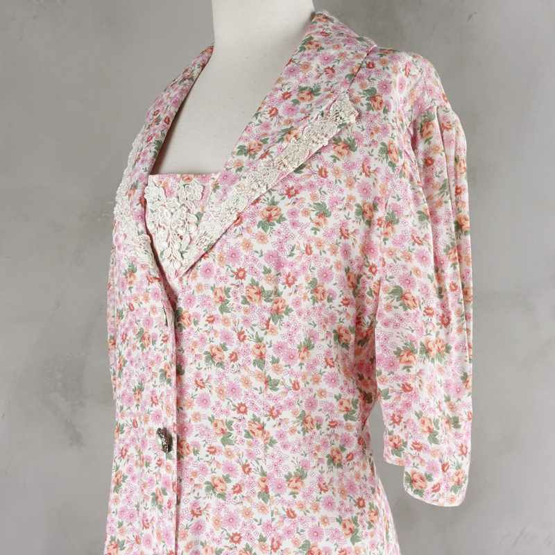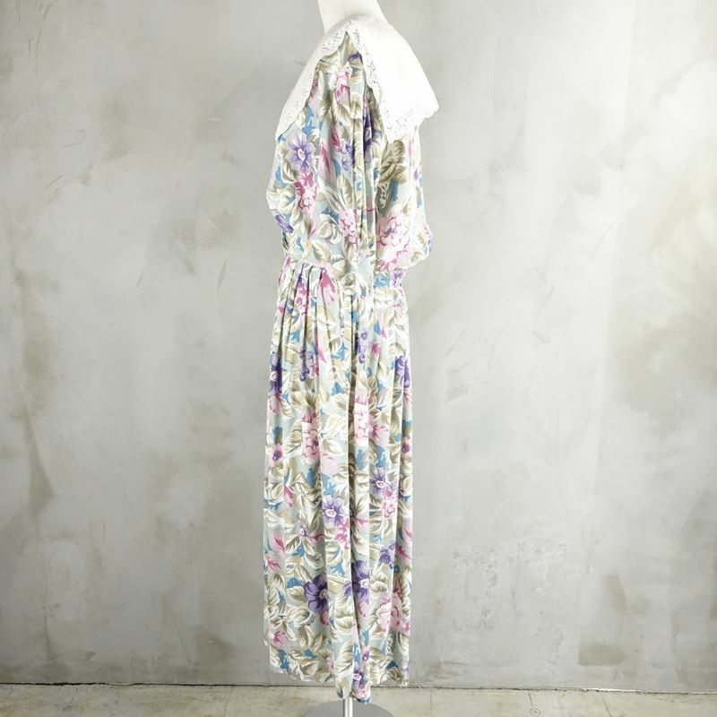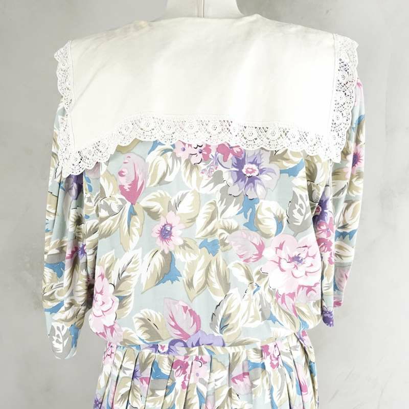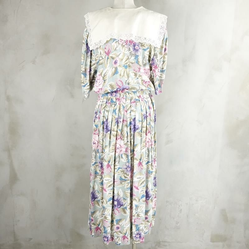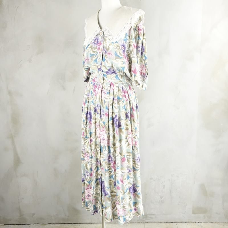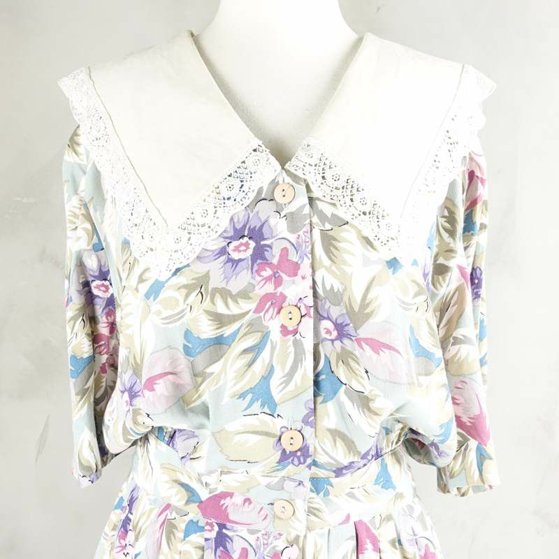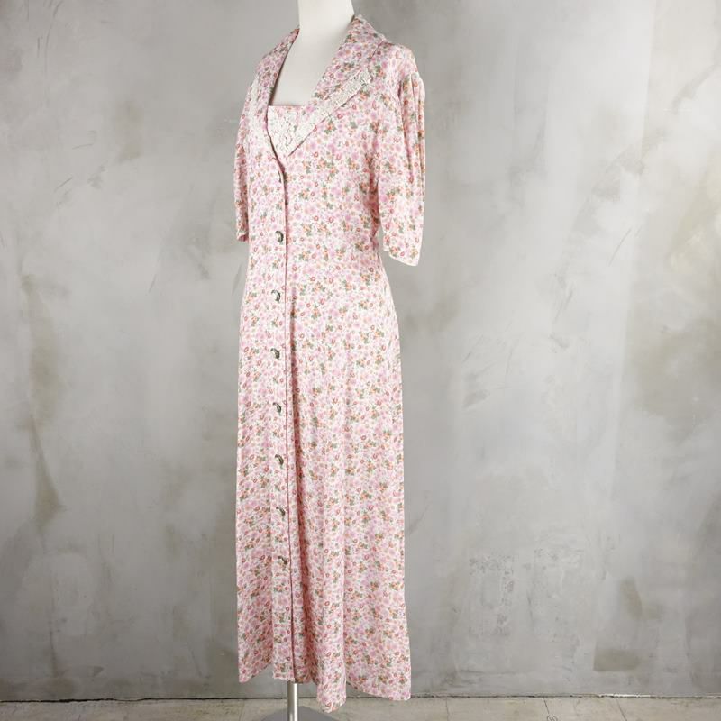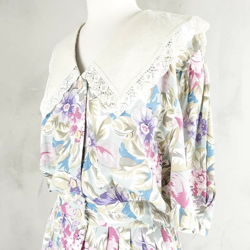 古着 花柄 レース付き 半袖ワンピース