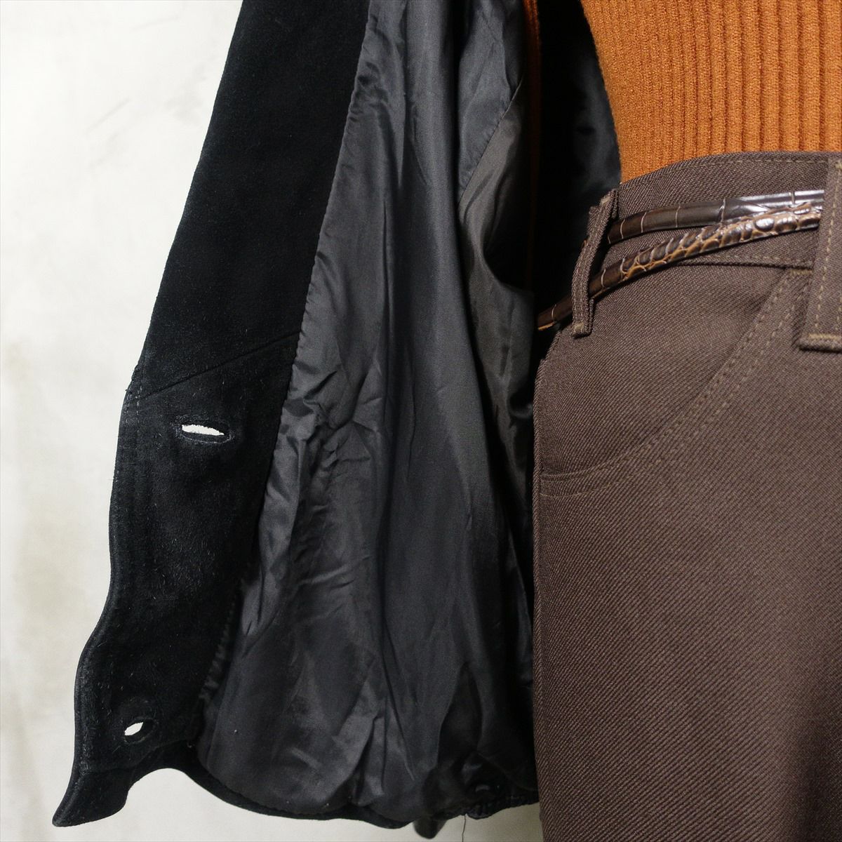 他の画像を見る Fafatt ファファット PUレザー ノーカラーコート 販売価格 ¥ 17,380 税込 合皮のレザーで作られたノーカラーのコートです。 シンプルな作りですが、ステッチがアクセントとなり一枚で可愛いデザインです。 ウェストのベルトを絞るとワンピースのようにも着て頂けます。 古着では珍しい肩の落ちるデザインの為、着こなしやすいレザーアイテムです。 カートに入れる お気に入りに登録する