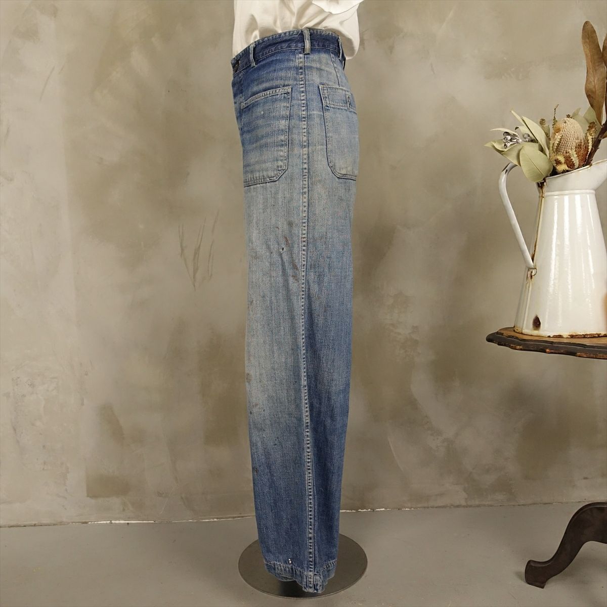 他の画像を見る Trench Layered Pant's 販売価格 ¥ 29,480 税込 ARMYトレンチコートを生地として用いて製作しております。膝上部分と膝下部分でレイヤード加工を施しております。ウエストはARMYパンツのアジャスターを用いており、アジャスターによりウエストの調整が可能です。用いた生地も50~60年代のARMYトレンチコートの為、生地に雰囲気がございます。 カートに入れる お気に入りに登録する