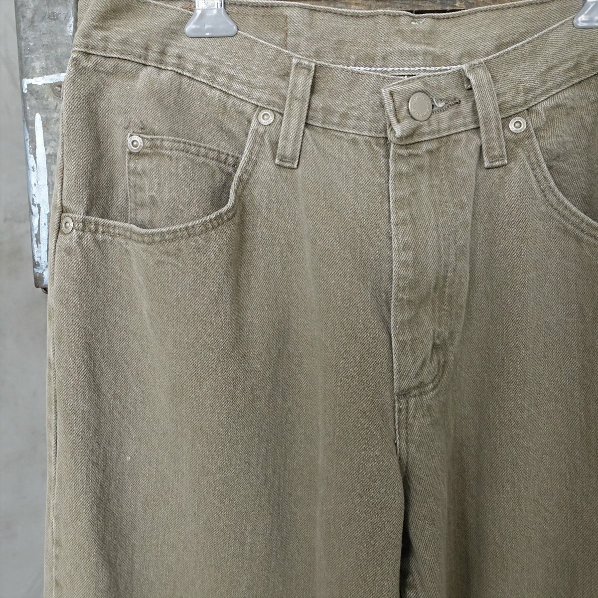 他の画像を見る Military Trench Coat Material Pant's 販売価格 ¥ 39,380 税込 ARMYトレンチコート1着にて製作したパンツです。フロントのポケットやエポレットもそのまま使用しており、裾はボタンにより大幅なテーパード加工が可能となっております。 カートに入れる お気に入りに登録する