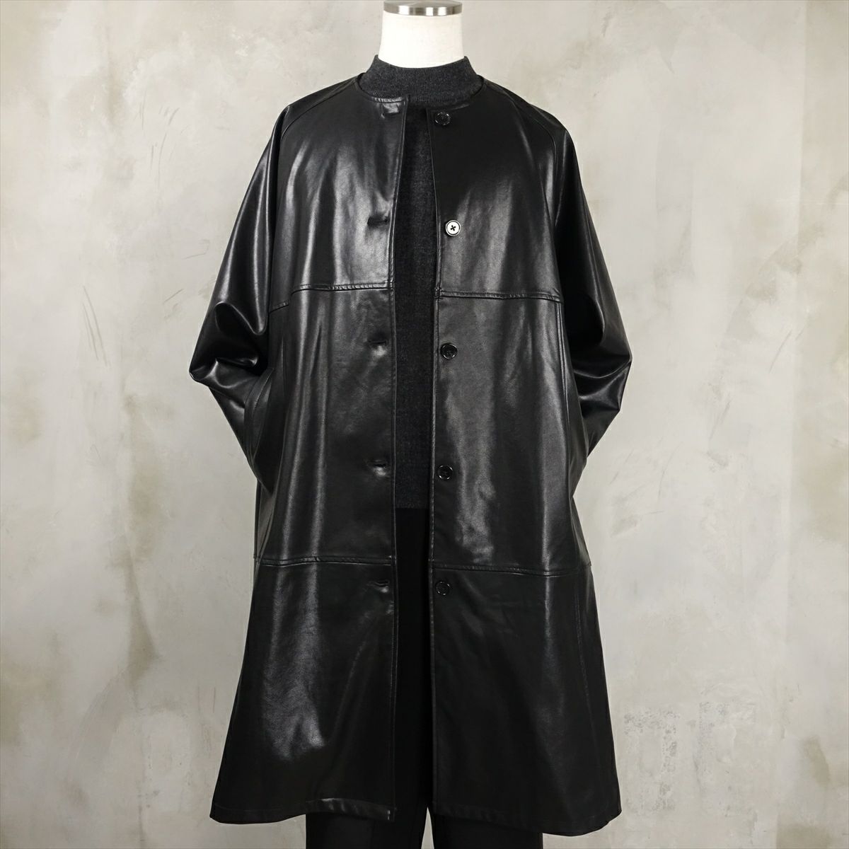 Fafatt ファファット PUレザー ノーカラーコート