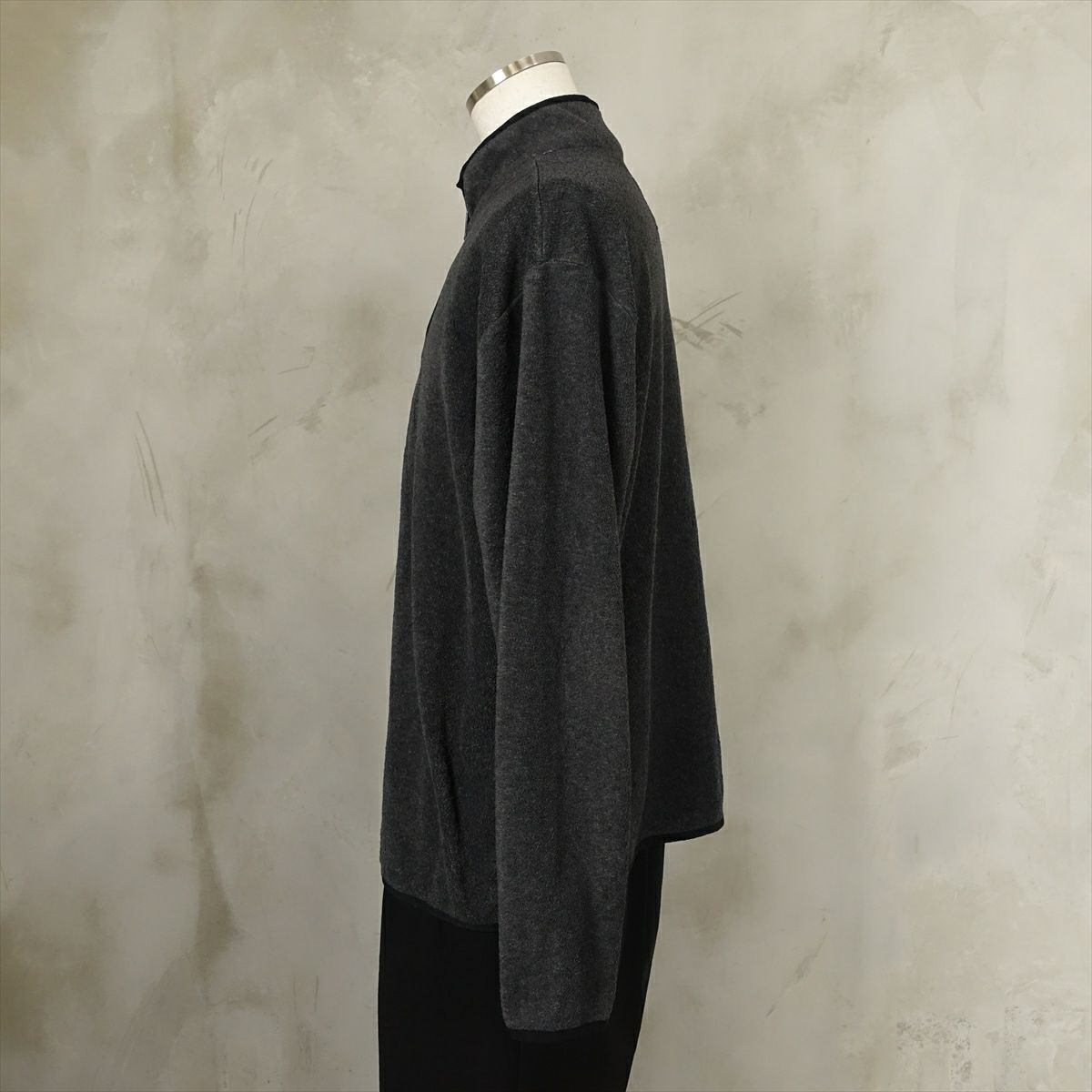合皮で作られたダブルトレンチコートです。本革に引けを取らない質感が特徴で、チープさがなく、1枚でコーディネートがきまる一押しアイテムです。軽さや柔らかさがあるため、コートならではの動きや、ウエストマークなど色々な表情を楽しめる1枚です。ブラウンベースの色味がコーディネートの邪魔をせず、着回しのしやすいアイテムです。メンズ合わせでガンフラップが付いていますが、女性でも着て頂けるサイズ感です。ワンランク上のアウターをお探しの方におすすめです。