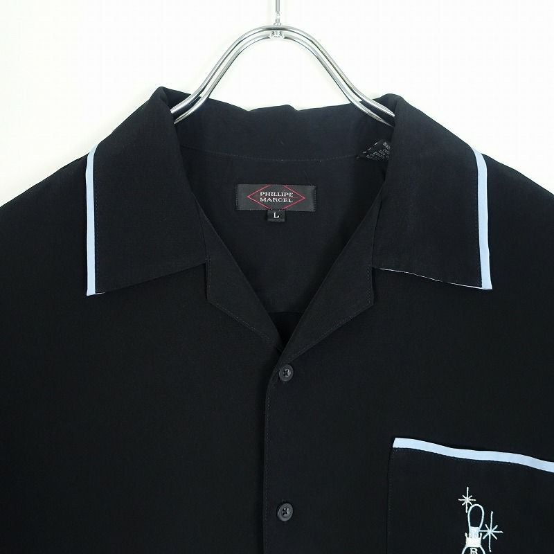 古着 PHILIPPE MARCEL 開襟 刺繍 ボウリングシャツ