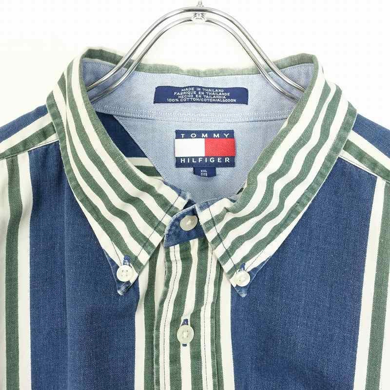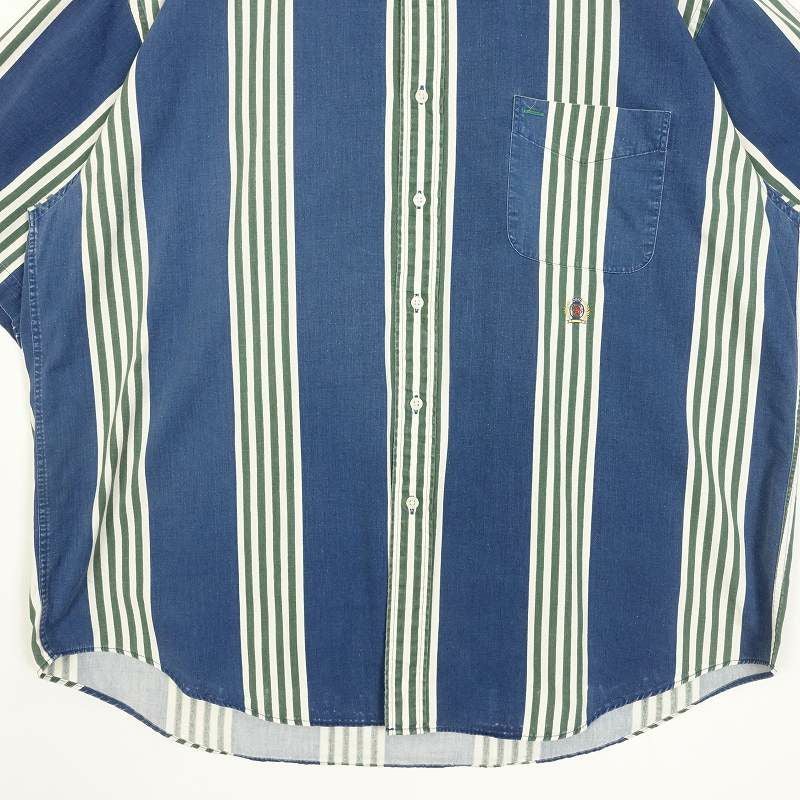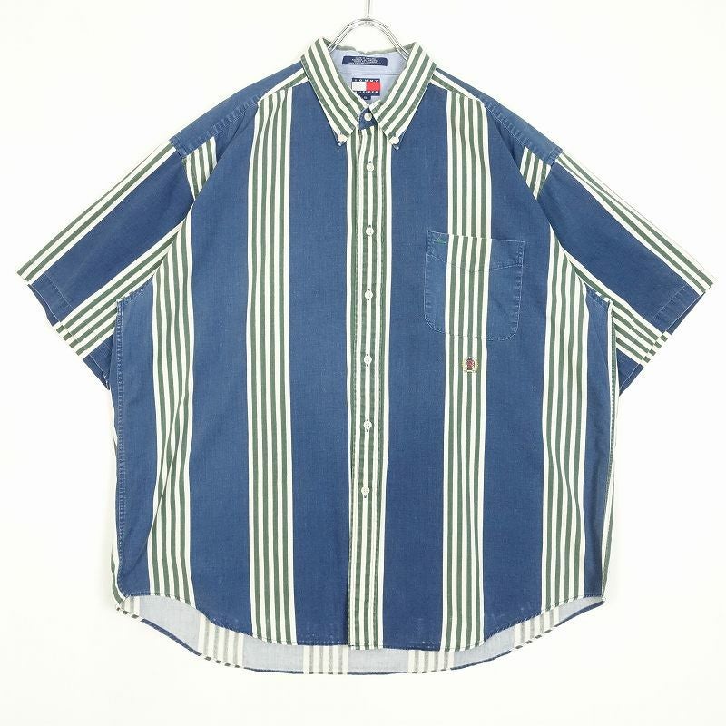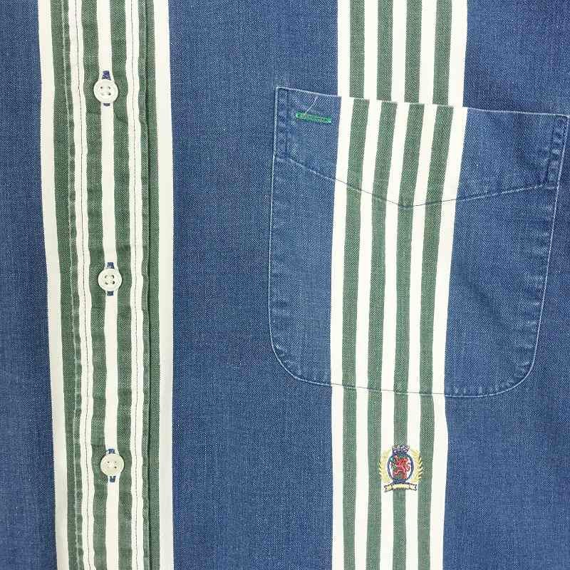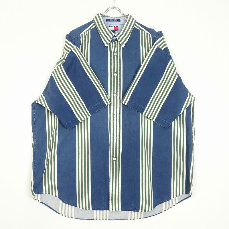 古着 TOMMY HILFIGER オーバーサイズ ランダムストライプ 半袖シャツ