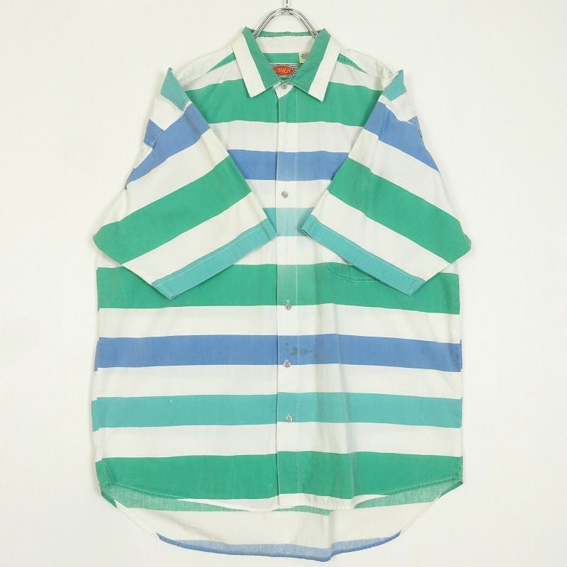 古着 DINER マルチカラー ワイドボーダー 半袖シャツ