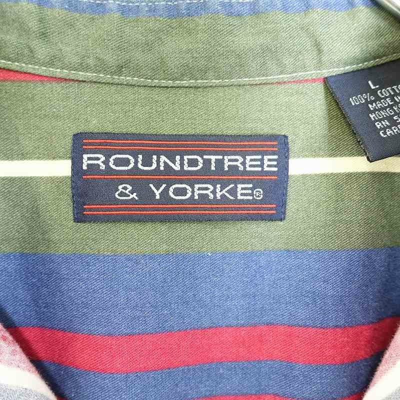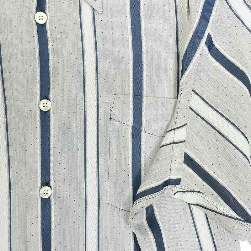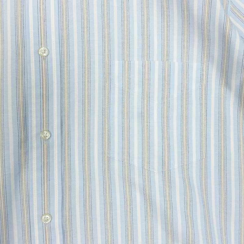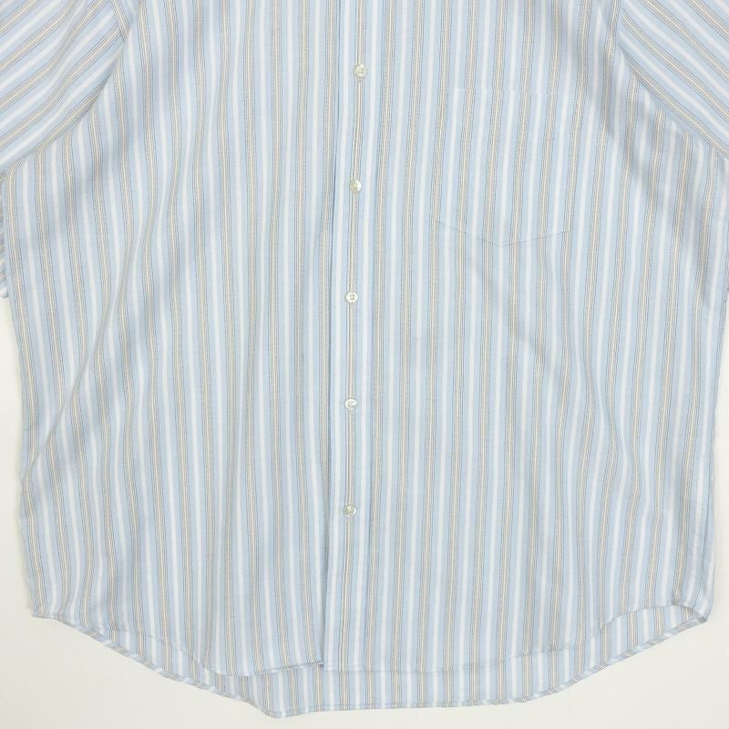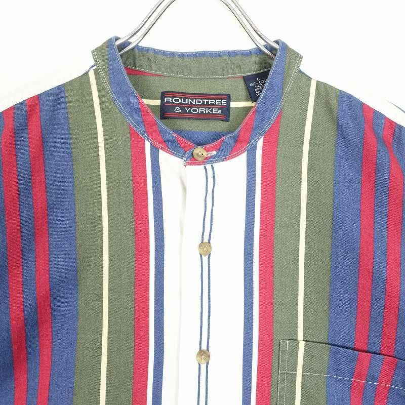 古着 ROUNDTREE&YORKE ノーカラー ランダムストライプ 半袖シャツ
