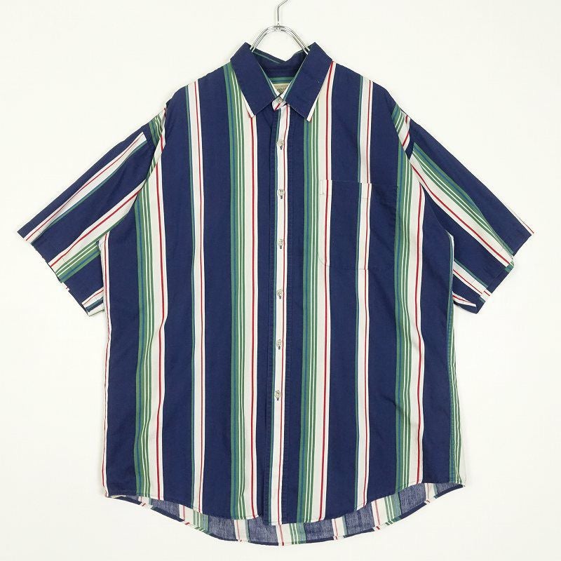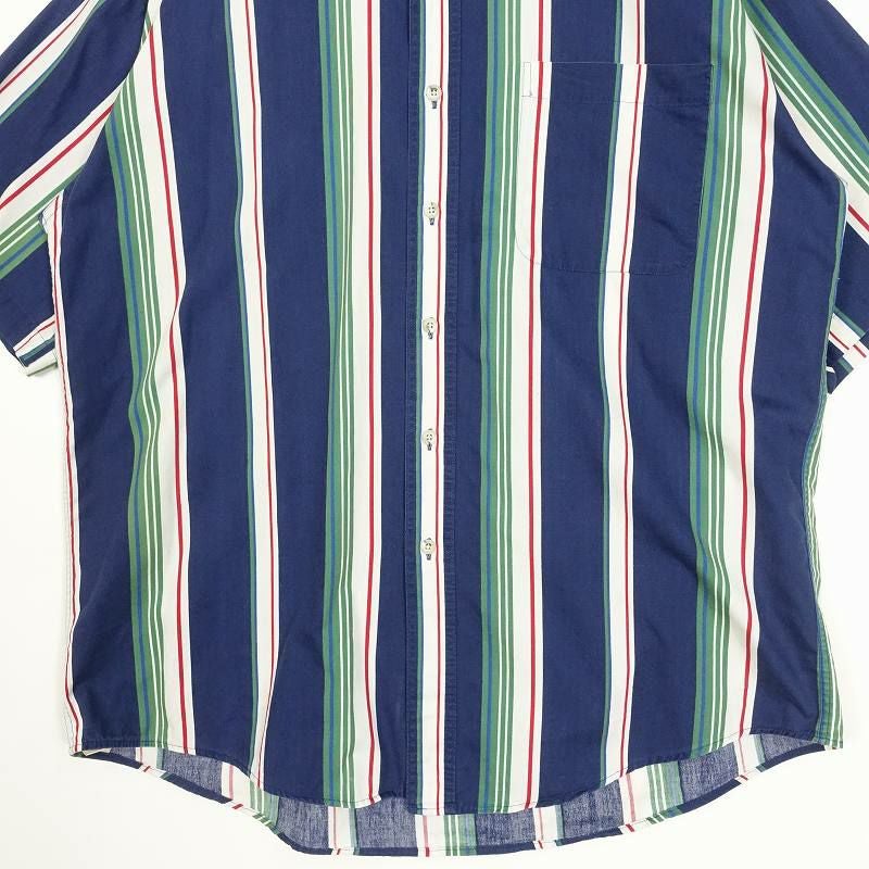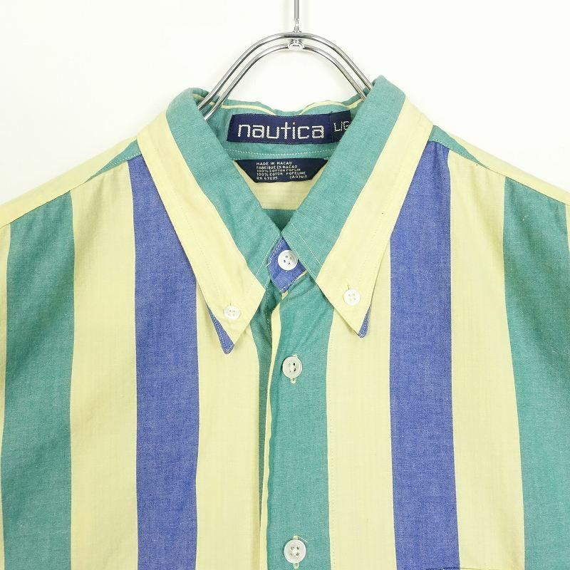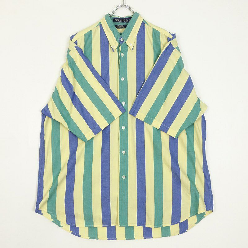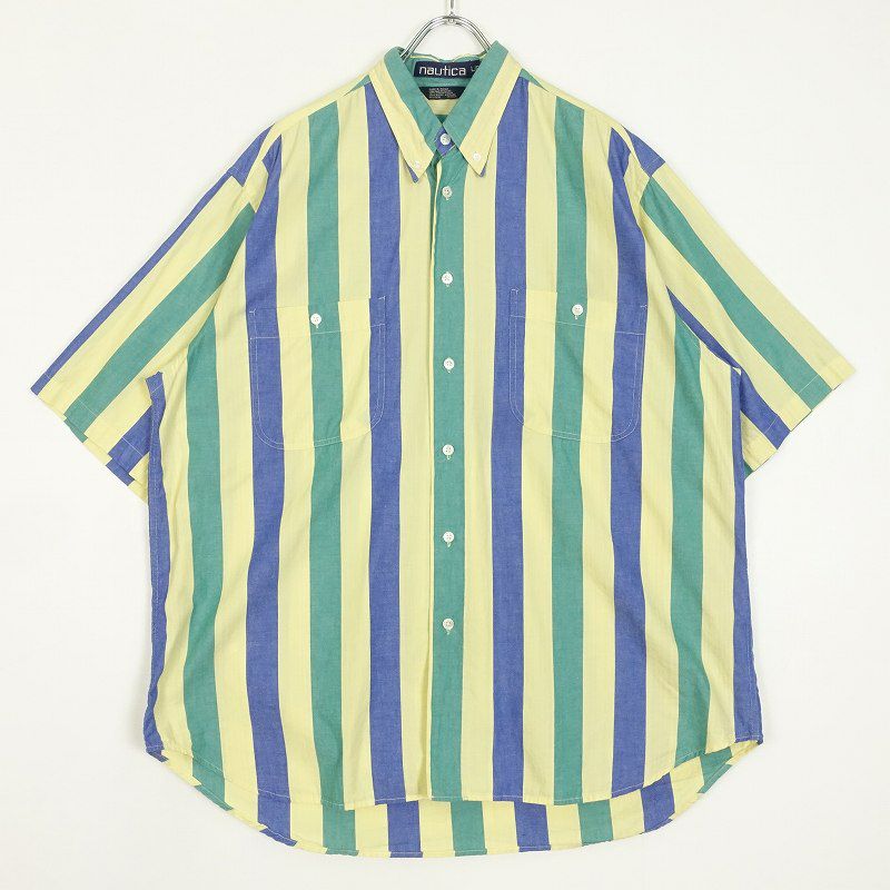 古着 NAUTICA ワイドストライプ ボタンダウン 半袖シャツ