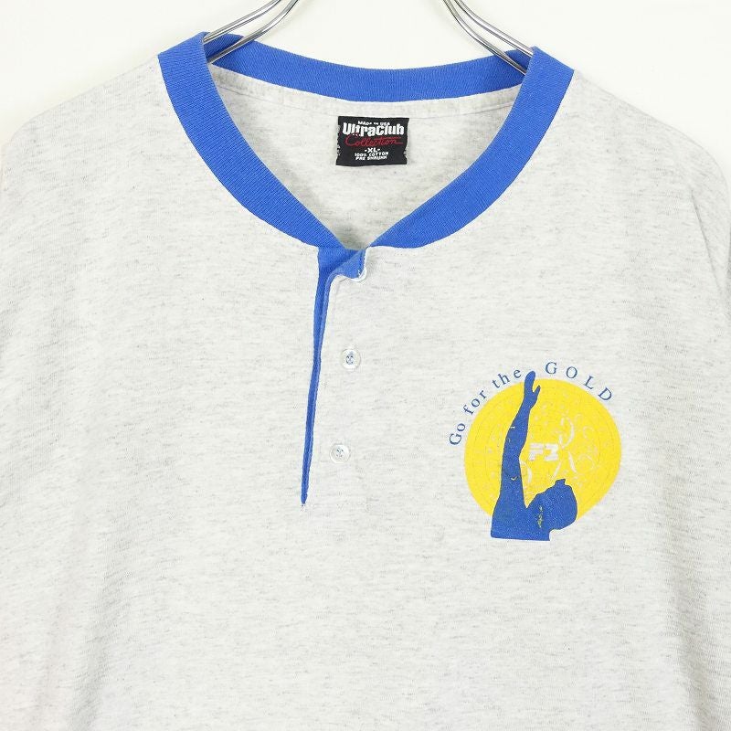 古着 ヘンリーネック ロゴプリント Tシャツ