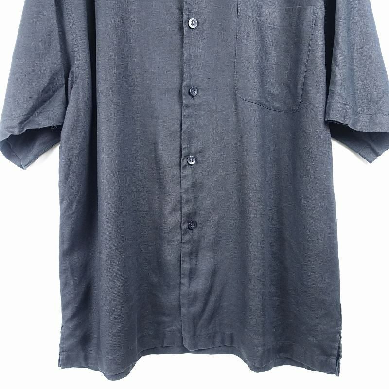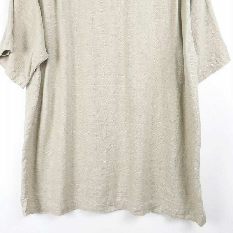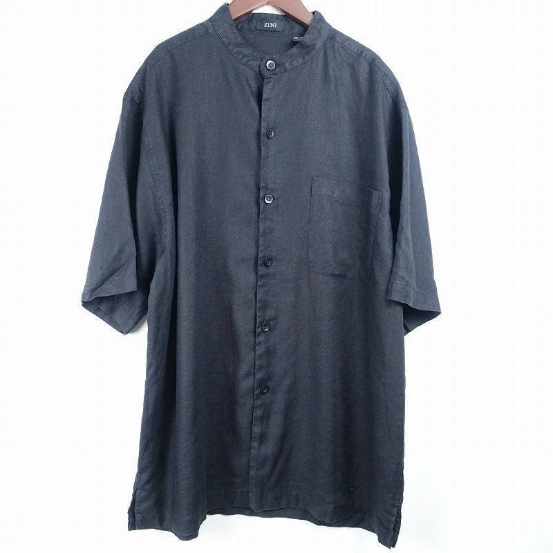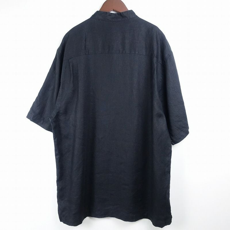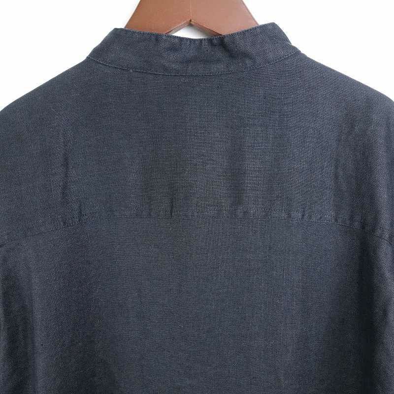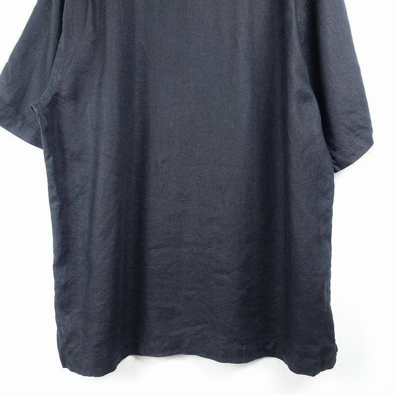 古着 ノーカラー リネン 無地 半袖シャツ