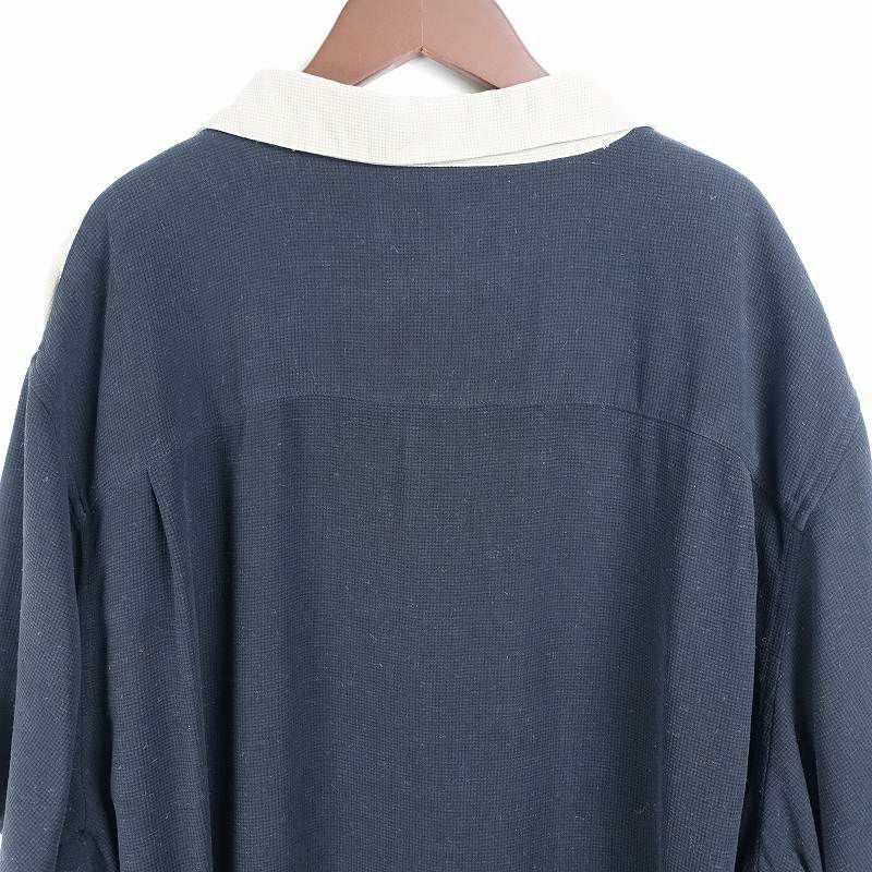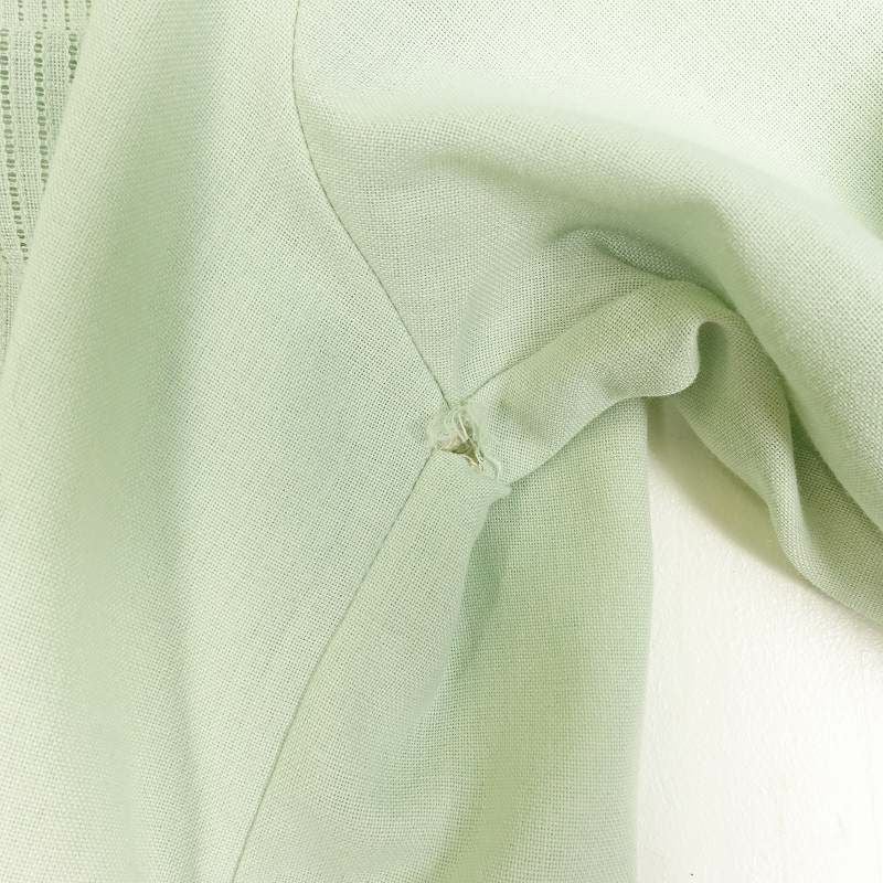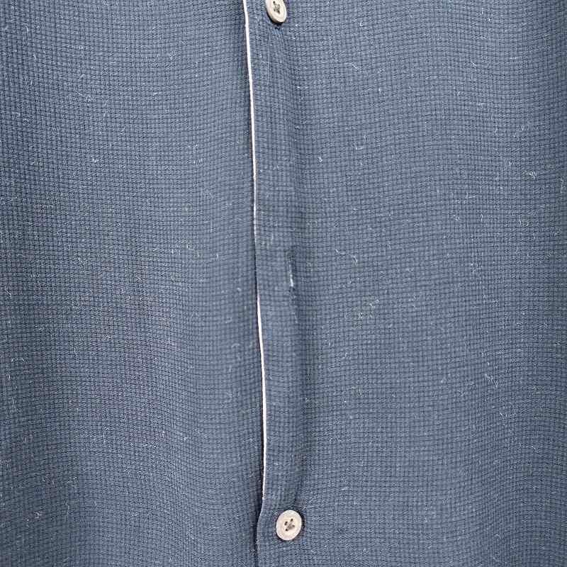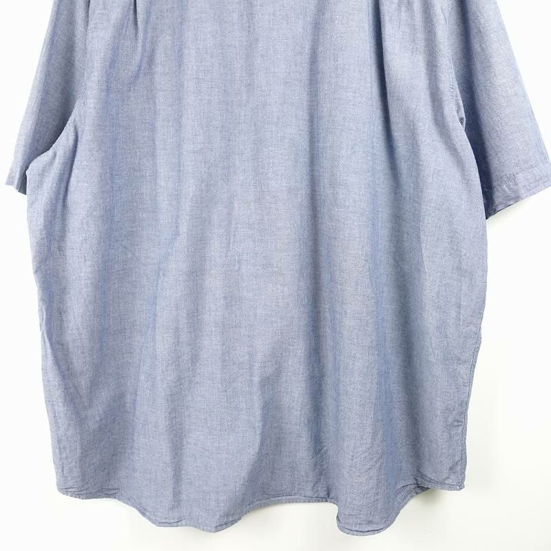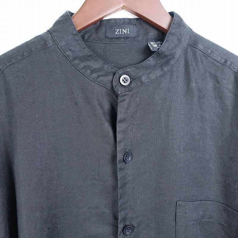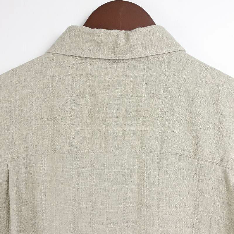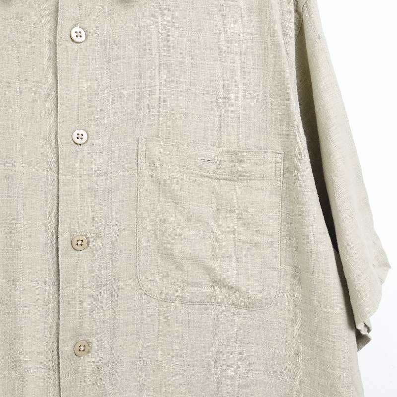 古着 ノーカラー リネン 無地 半袖シャツ