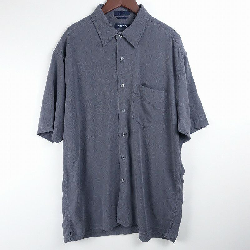 古着 ダークトトーン シルク 無地 半袖シャツ