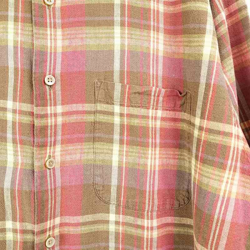 古着 同系色チェック 刺繍 リネン 半袖シャツ