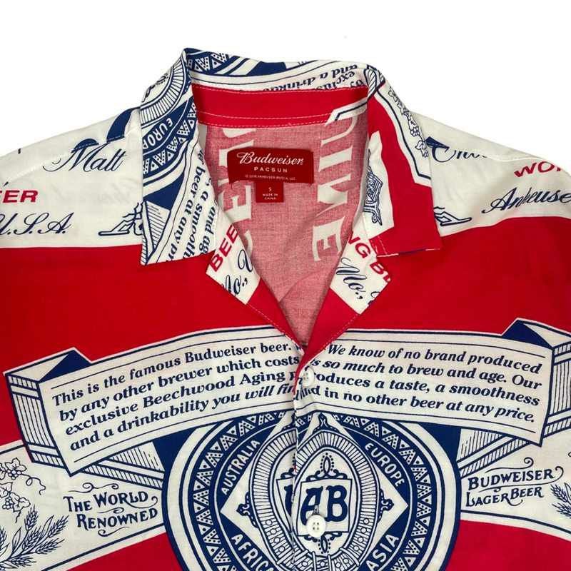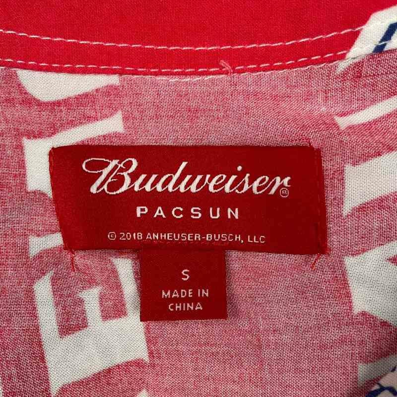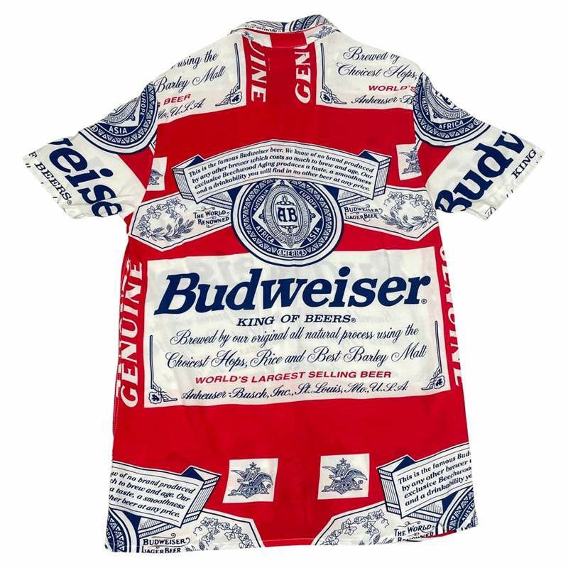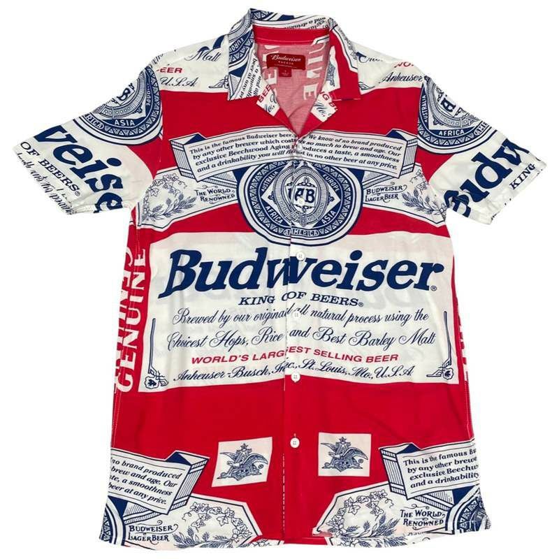 古着 Budweiser 総柄 開襟 半袖シャツ